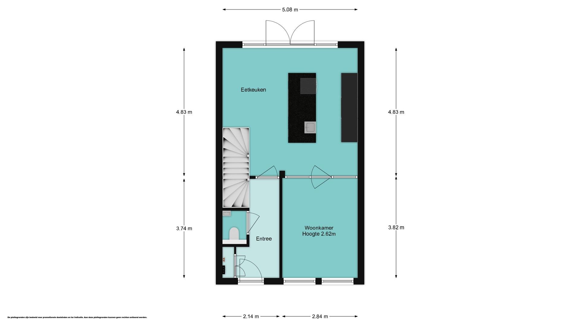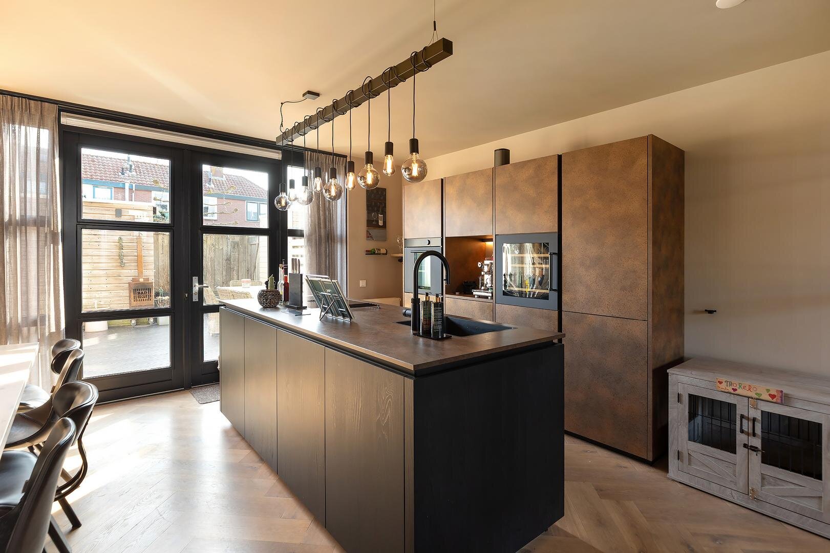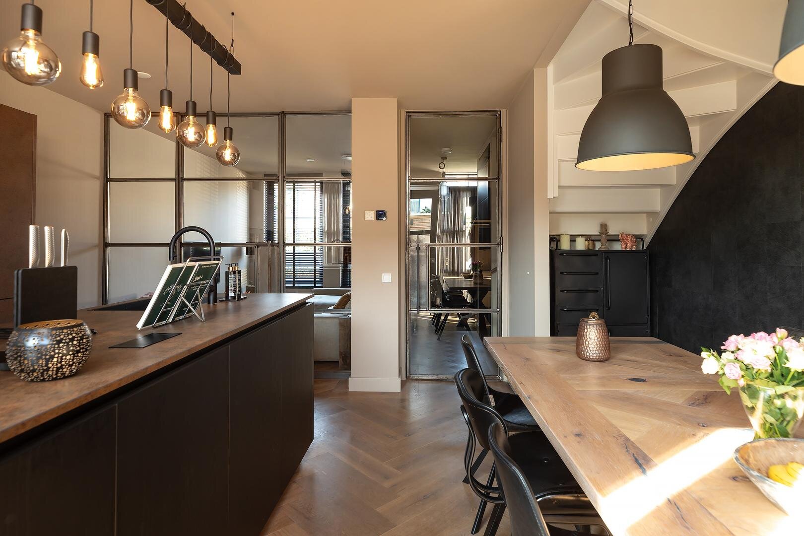 begane grond: entree, ruime hal met meterkast en garderobe, modern toilet met fonteintje, ruime en lichte tuingerichte woonkeuken met inbouwapparatuur, openslaande deuren naar de zonnige achtertuin met zonnescherm. Aan de voorzijde is de zitkamer gesitueerd en die is afsluitbaar van de woonkeuken middels stalen deur met glas.