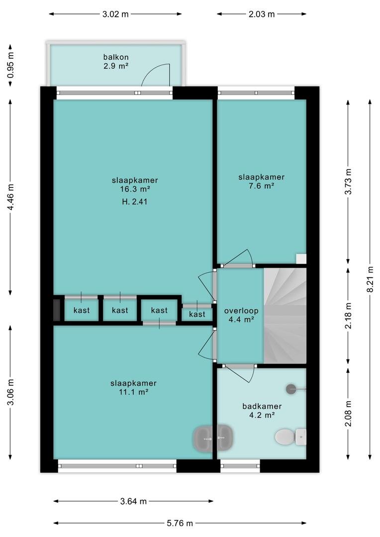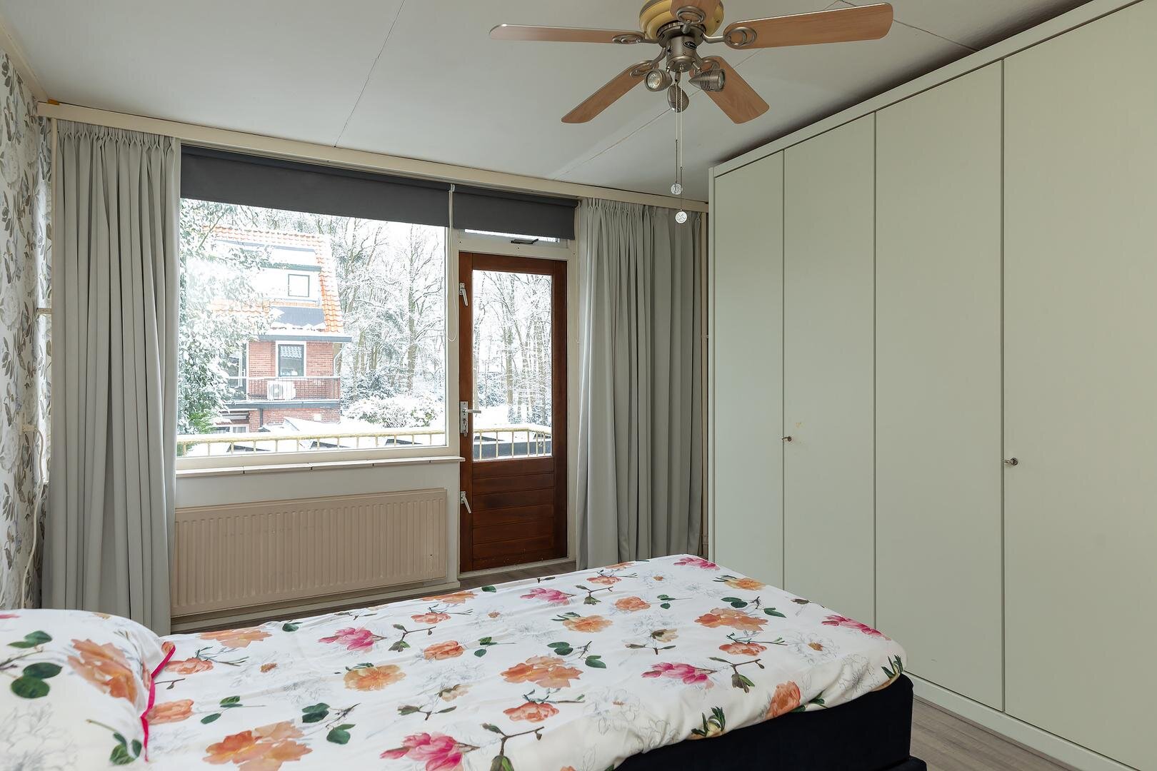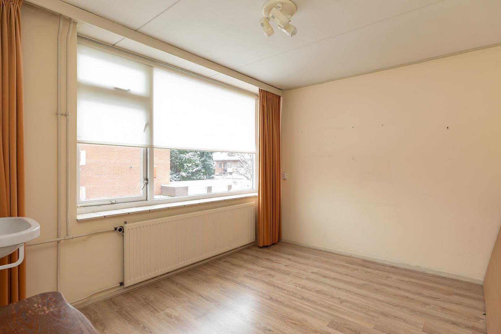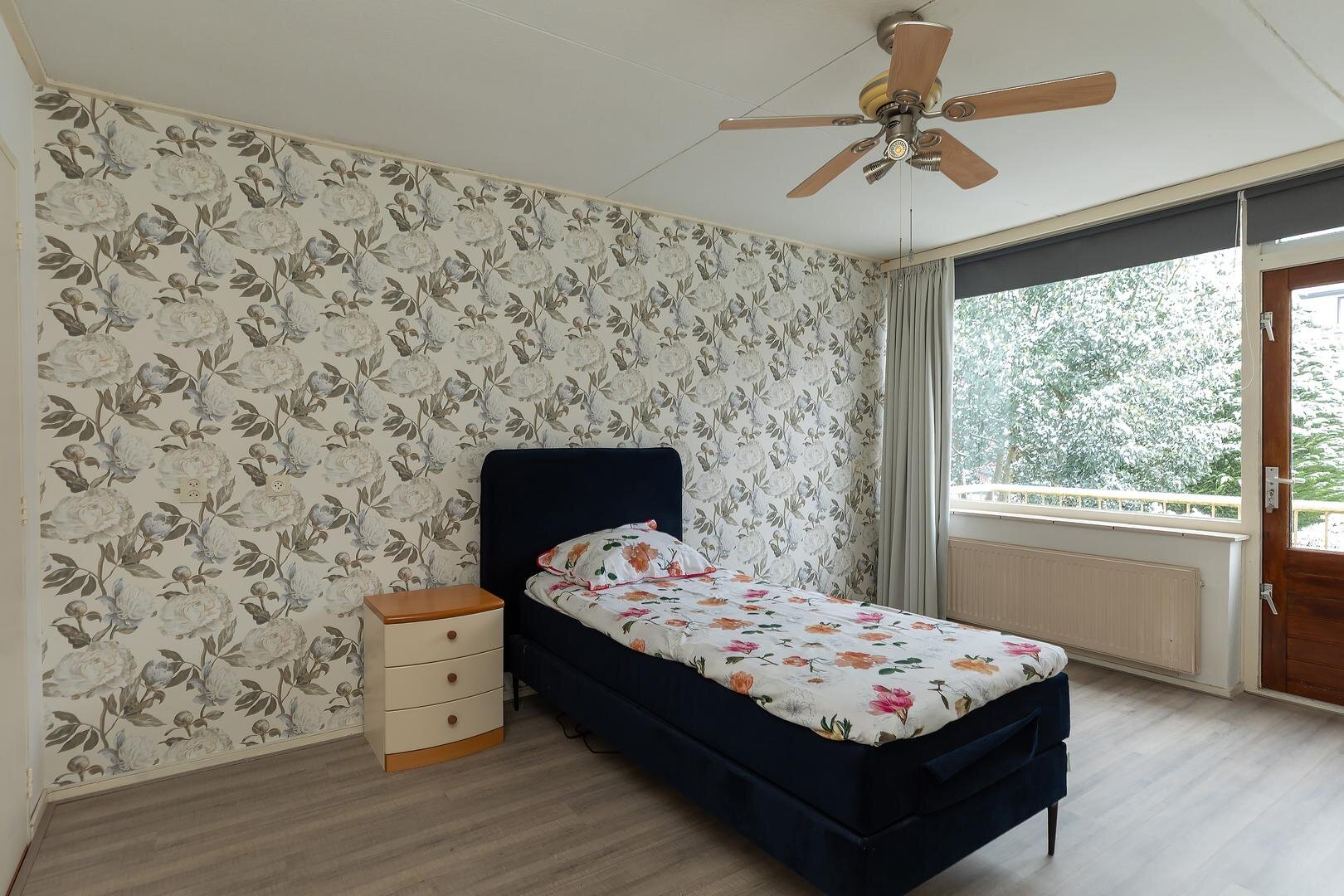 Overloop, ruime hoofdslaapkamer met vaste kasten en toegang tot het balkon, 2e goed bemeten slaapkamer met vaste kast en wastafel, 3e kleinere slaapkamer aan de achterzijde, (de kamers zijn circa 8, 11 en 16 m²), badkamer met douche, wastafel en toilet.