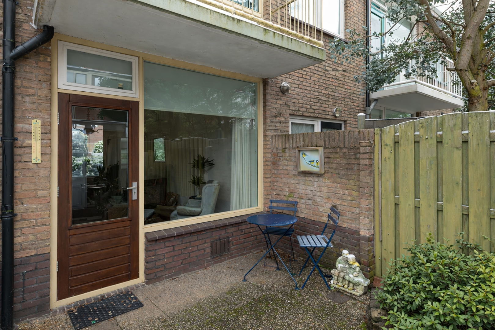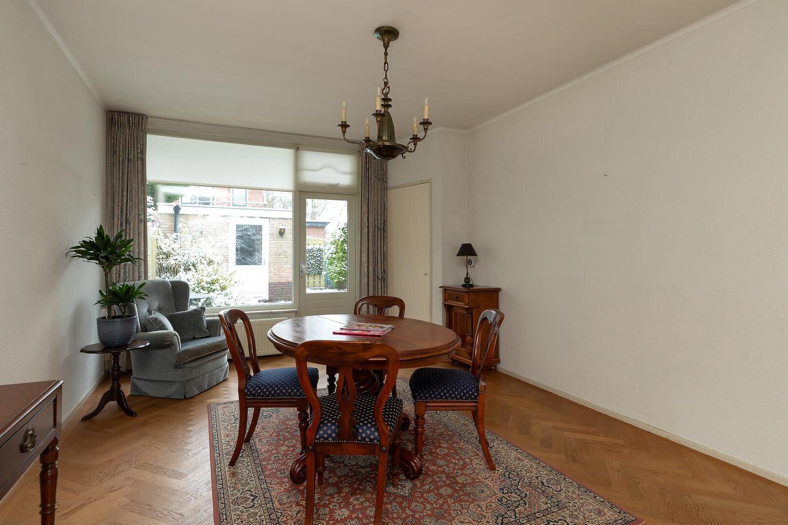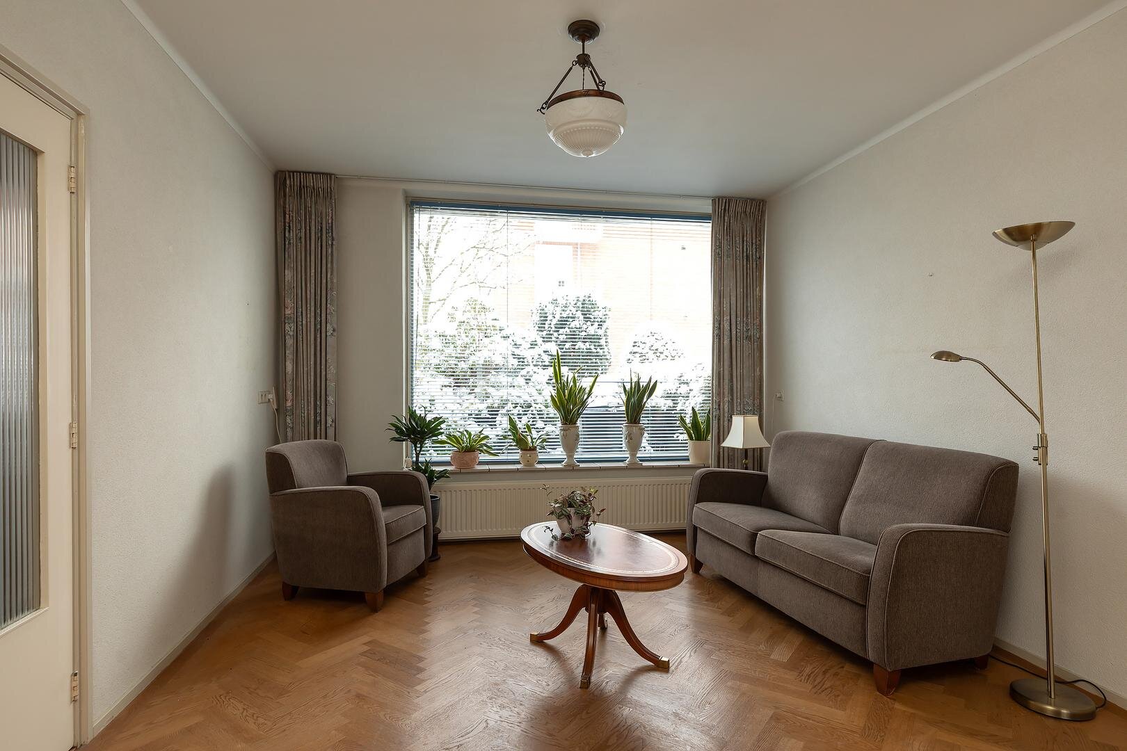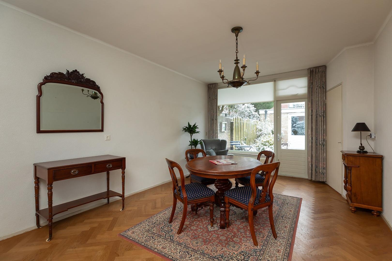Entree/hal, toilet met fonteintje, verdiepte kelderkast met meterkast, gesloten keuken met deur naar achtertuin, woon/eetkamer met visgraat parketvloer, vaste kast en deur naar de achtertuin. De tuin is tevens via een achterom te bereiken en heeft een stenen schuur.
