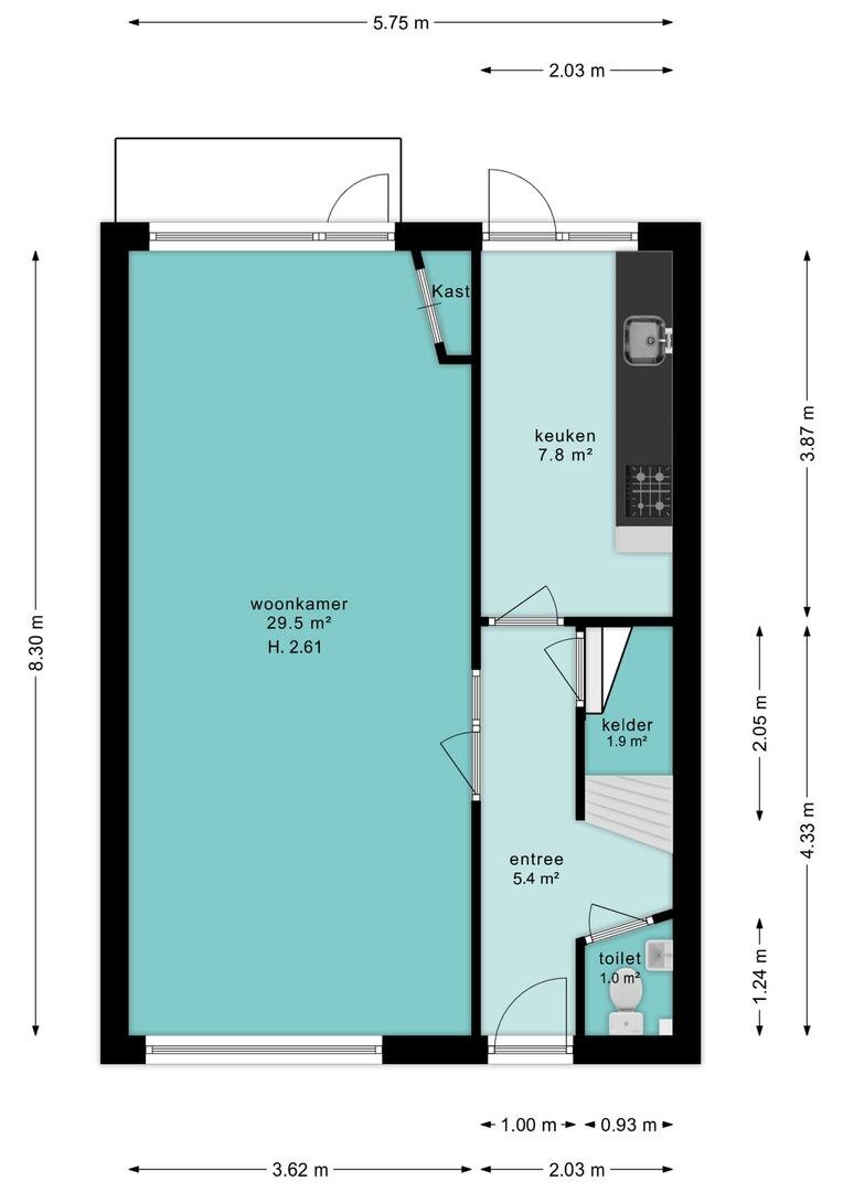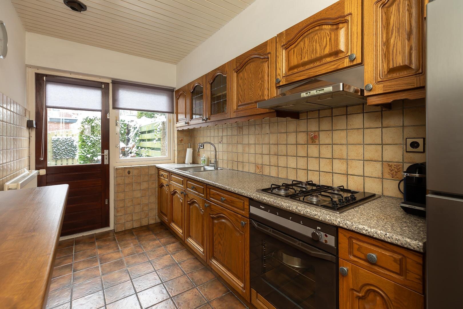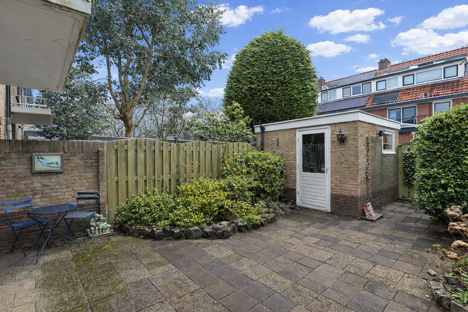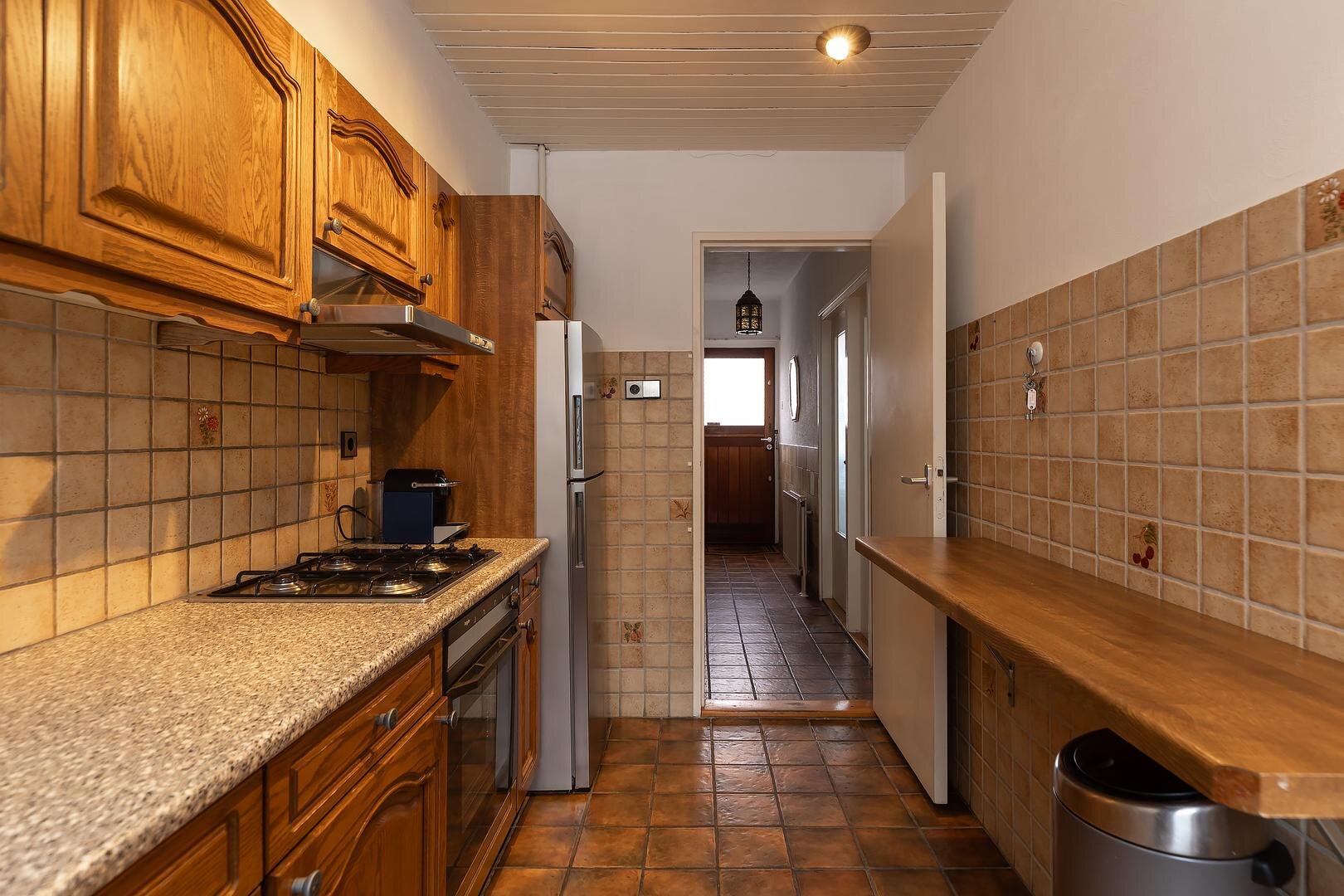 Entree/hal, toilet met fonteintje, verdiepte kelderkast met meterkast, gesloten keuken met deur naar achtertuin, woon/eetkamer met visgraat parketvloer, vaste kast en deur naar de achtertuin. De tuin is tevens via een achterom te bereiken en heeft een stenen schuur.