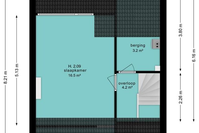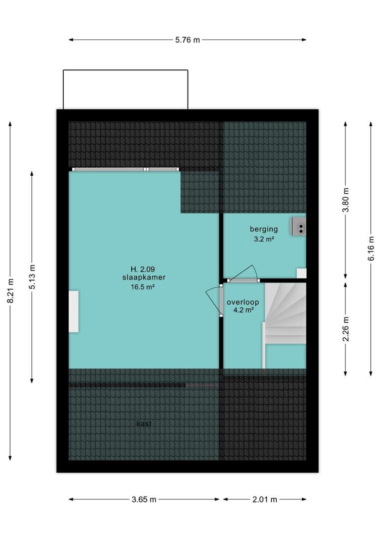 Middels een vaste trap is de zolder bereikbaar. Grote voorzolder met verlaagd plafond, 4e slaapkamer met dakkapel en bergruimte, separate en goede bergruimte met C.V. opstelling en wasmachine-/drogeraansluiting. Ideaal.
