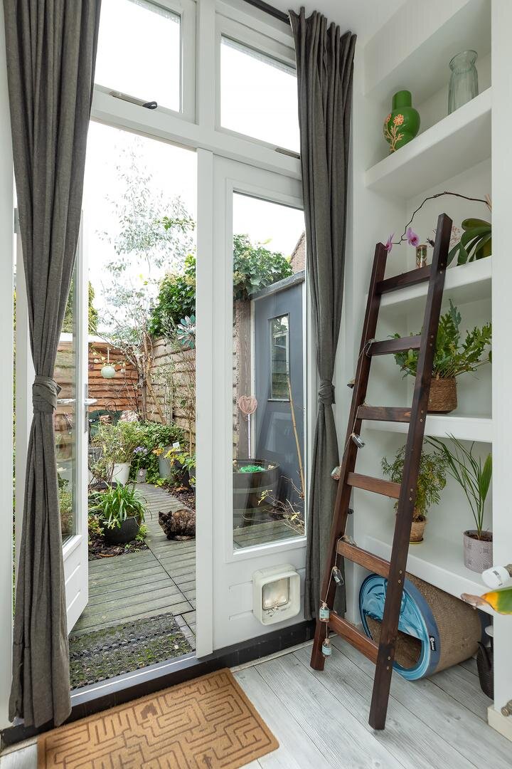 Via de Neuweg betreed je via de brede witte poortdeuren de gedeelde opgang met ruimte om de fiets te stallen. Deze opgang deelt u met de linker en rechter buren.