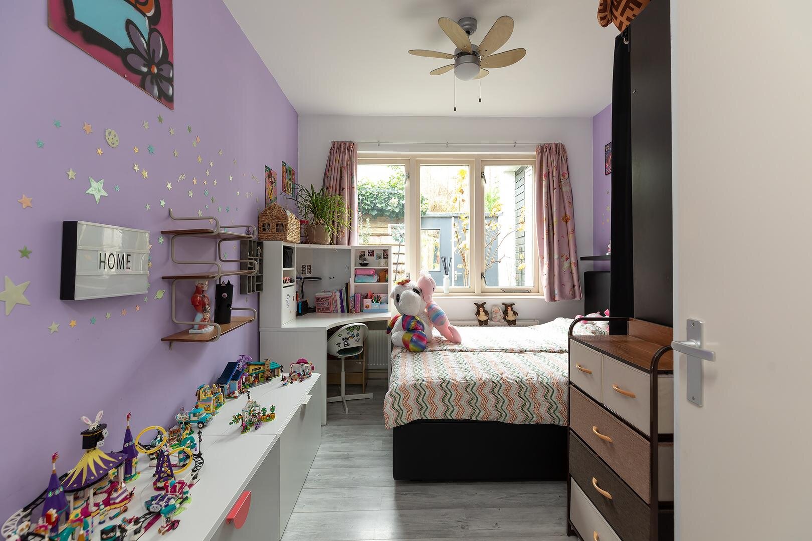 Verbouwd in 2023, vaste trap naar het geïsoleerde en gerenoveerde souterrain met 2e toilet, riante slaapkamer met werkplek en een ruime bergkamer.