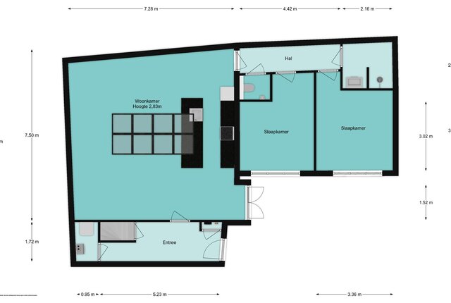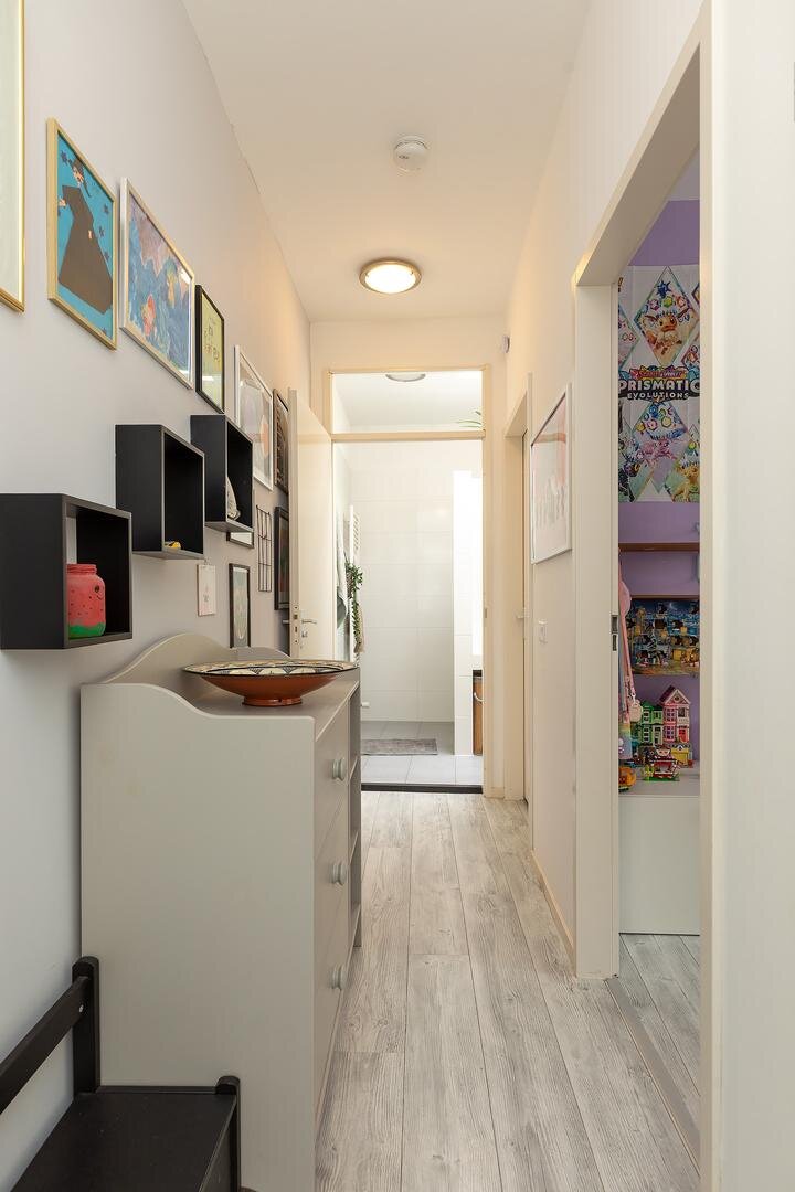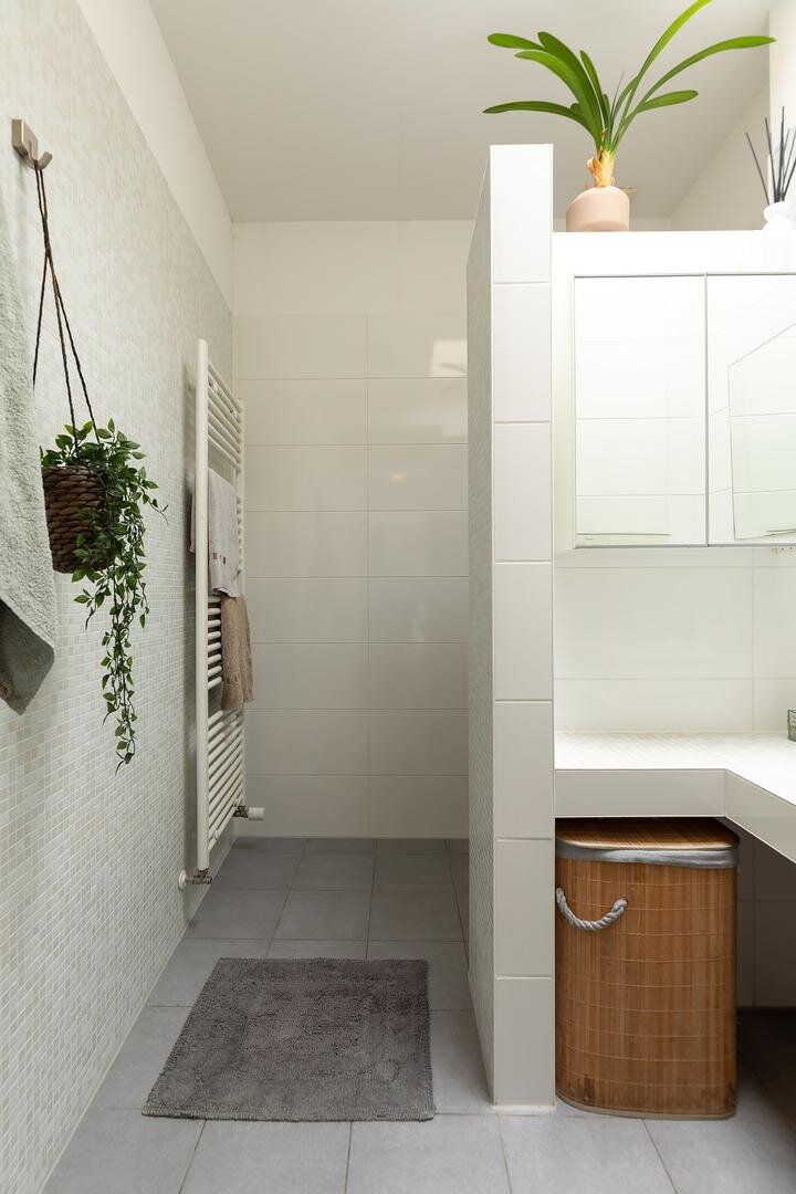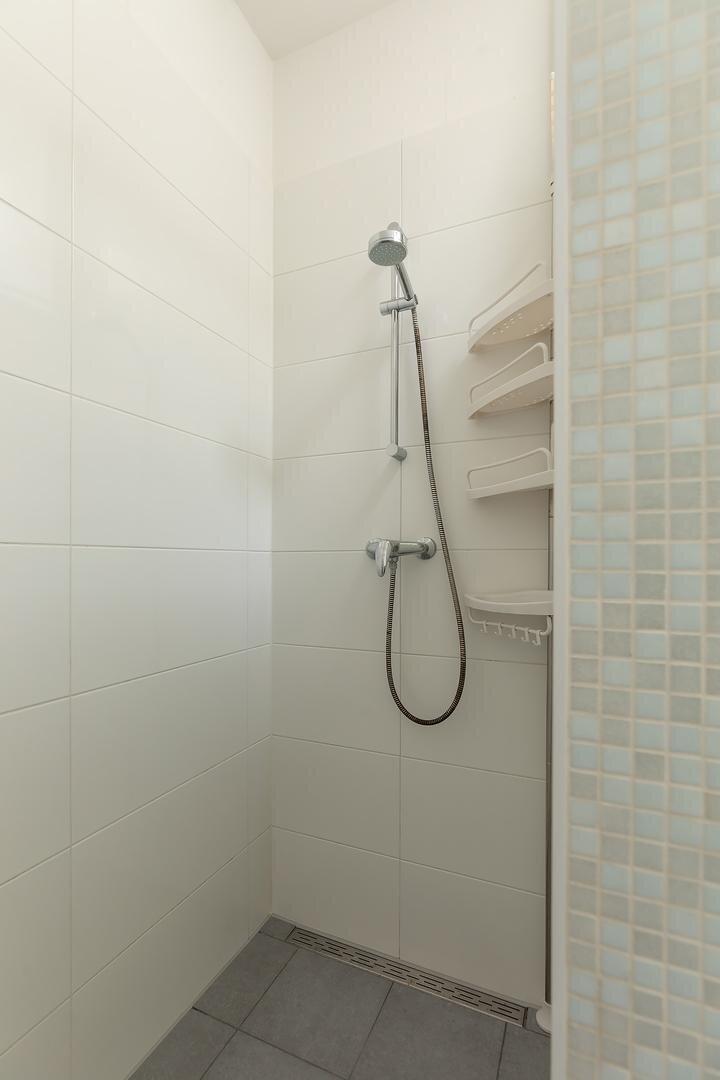 Via de woonkamer bereik je de hal met een separaat toilet met fonteintje, twee goed bemeten slaapkamers en een badkamer met ruime inloopdouche en wastafel.