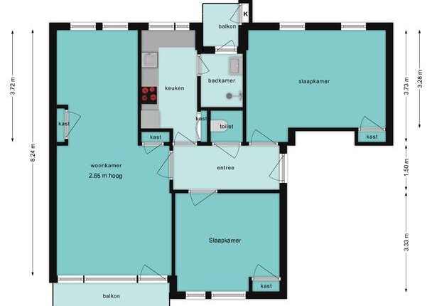 Indeling: entree/hal met modern toilet, ruime slaapkamer aan de achterzijde met vast kast, 2e goed bemeten slaapkamer gelegen aan voorzijde met vaste kast. Moderne dichte modern keuken met inductieplaat, afzuigkap, oven, vaatwasser, koel-/vriescombinatie, vaste kast, aansluiting wasmachine en opstelling c.v.-ketel (Intergas 2023). Vanuit de keuken toegang tot de moderne geheel betegelde badkamer met inloopdouche, wastafelmeubel en deur naar toegang tot het balkon aan de achterzijde met balkonkast en trappetje naar de ruim bemeten achtertuin waar van de zon genoten kan worden. De royale en lichte woon- / eetkamer (voorheen 2 slaapkamers) is voorzien van laminaatvloer.