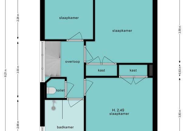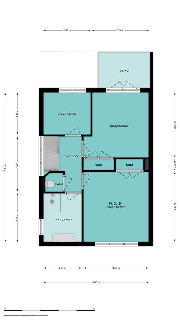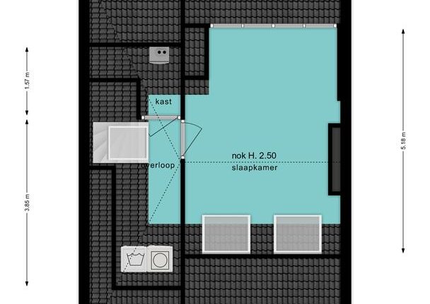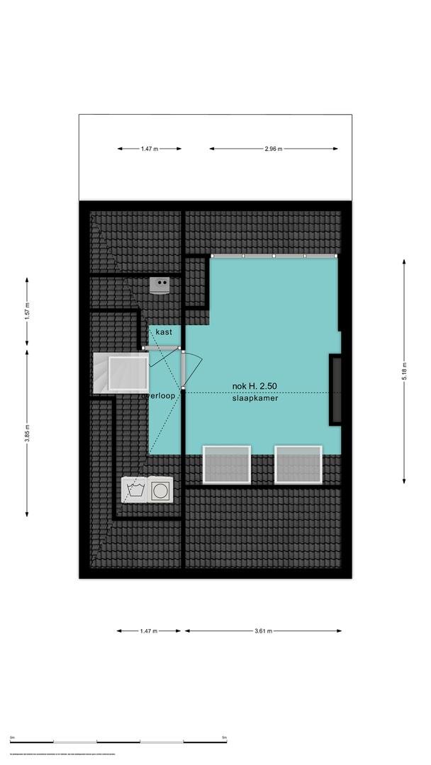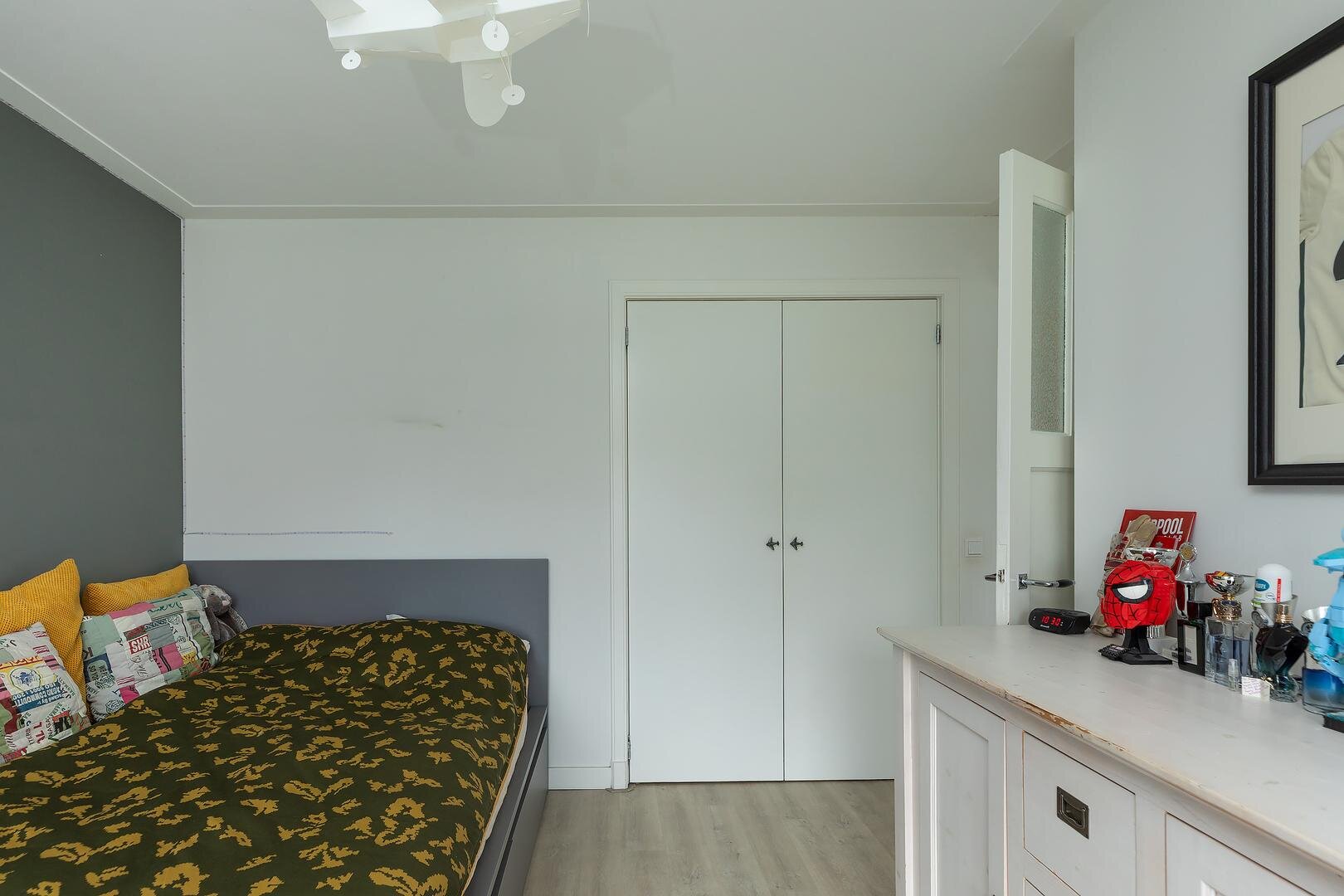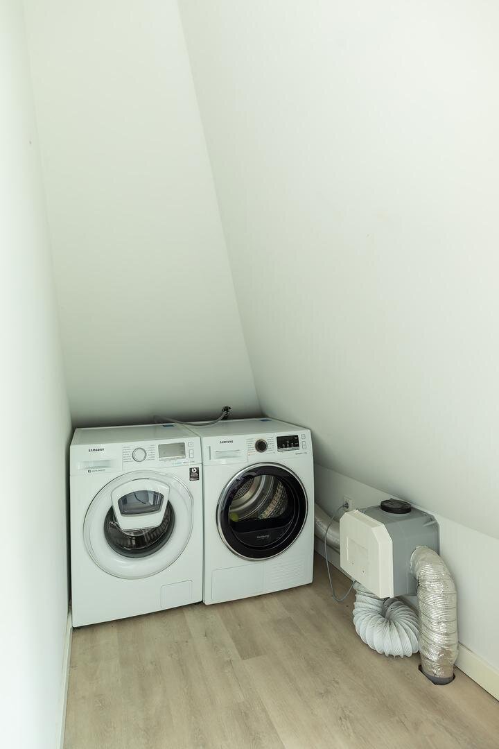 2e verdieping: via vaste trap naar overloop met dakraam, aansluitingen wasapparatuur en kast met bergruimte en c.v.-opstelling (Remeha 2003). Zeer ruime slaapkamer met dakkapel aan de achterzijde, 2 Velux dakramen en airconditioning.