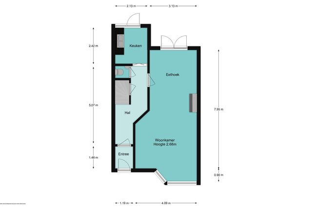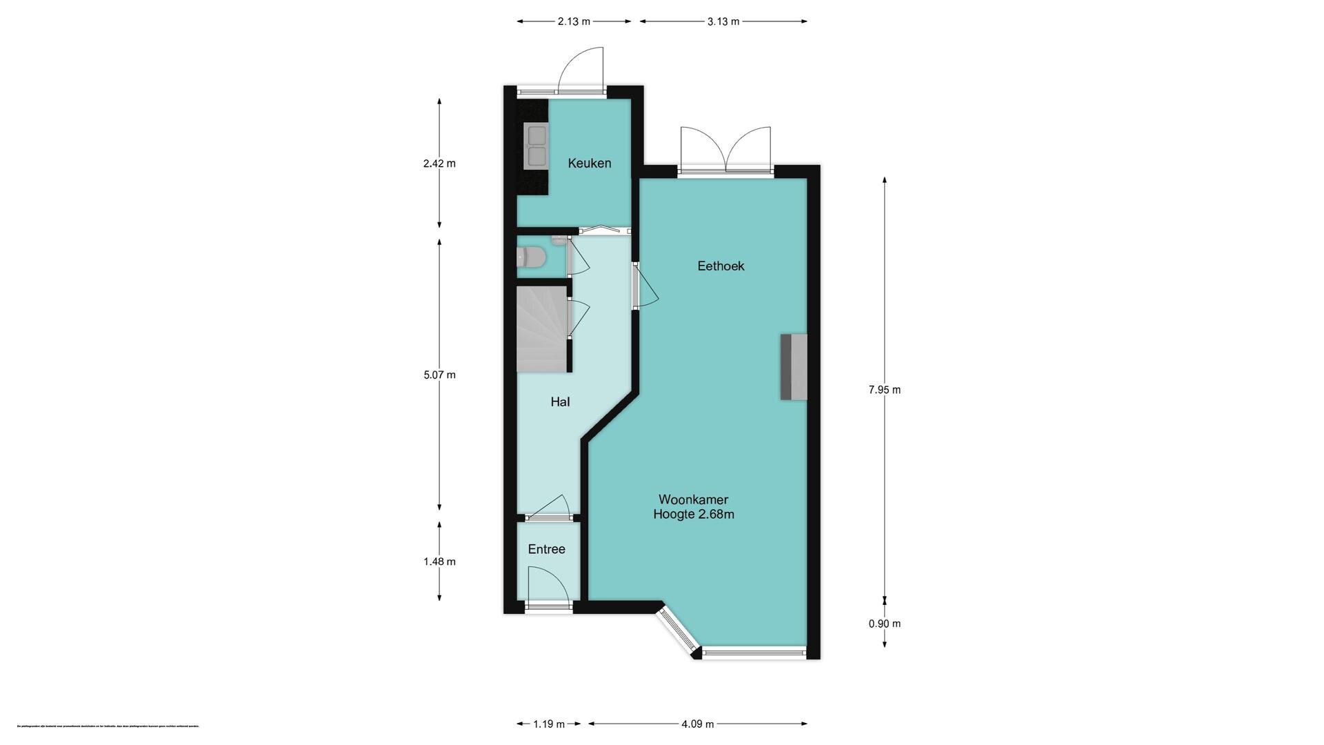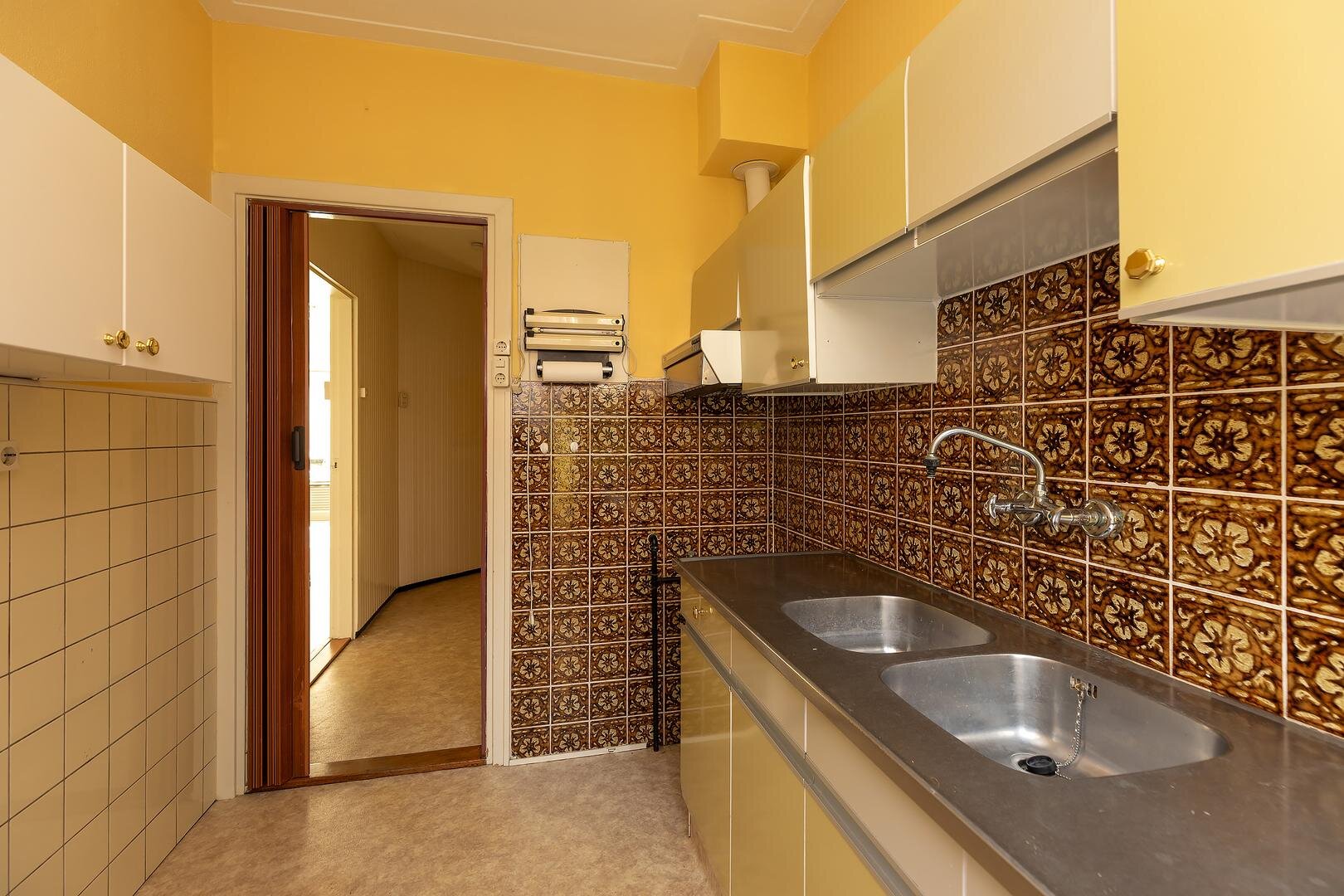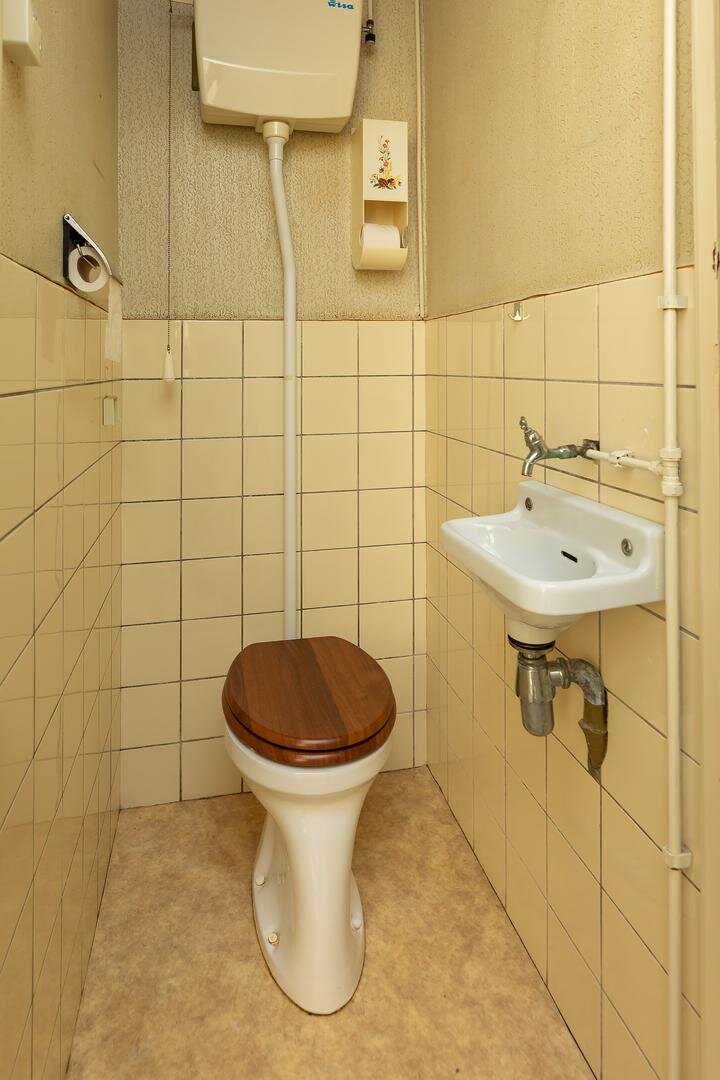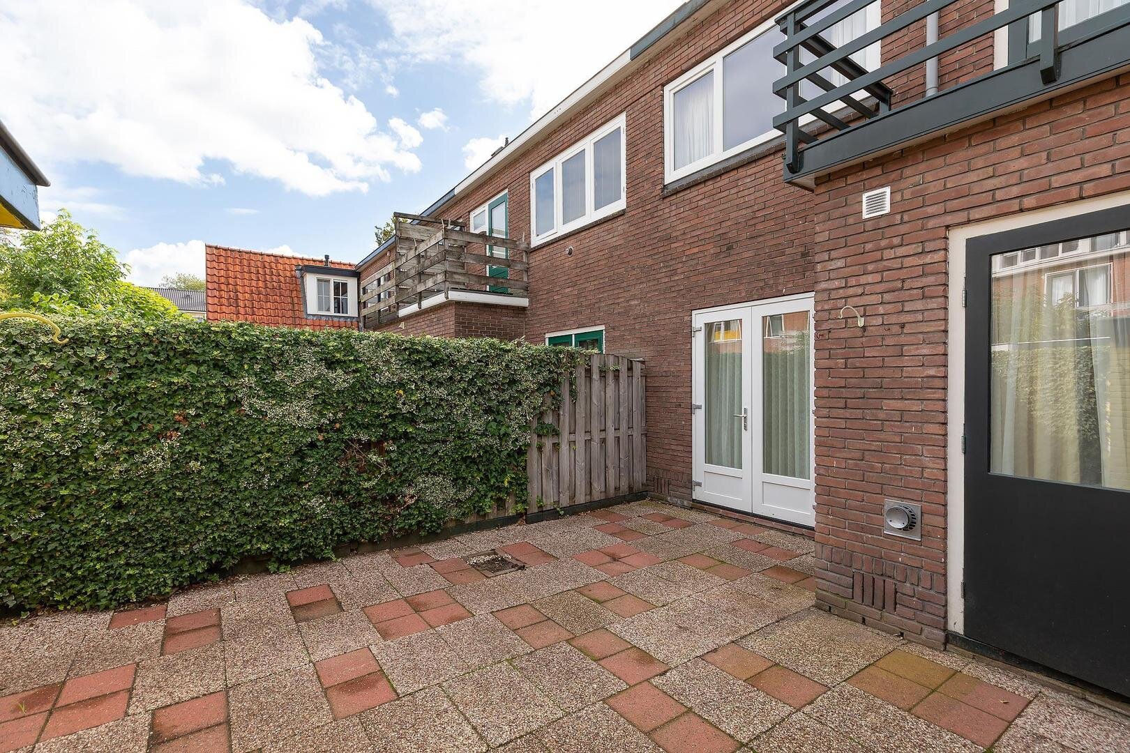 Entree/vestibule, hal, trapkast, toilet met fonteintje, woon-/eetkamer met openslaande deuren naar de achtertuin en een charmante erker aan de voorzijde, separate keuken met een deur naar de achtertuin die voorzien is van een stenen schuur en een achterom.