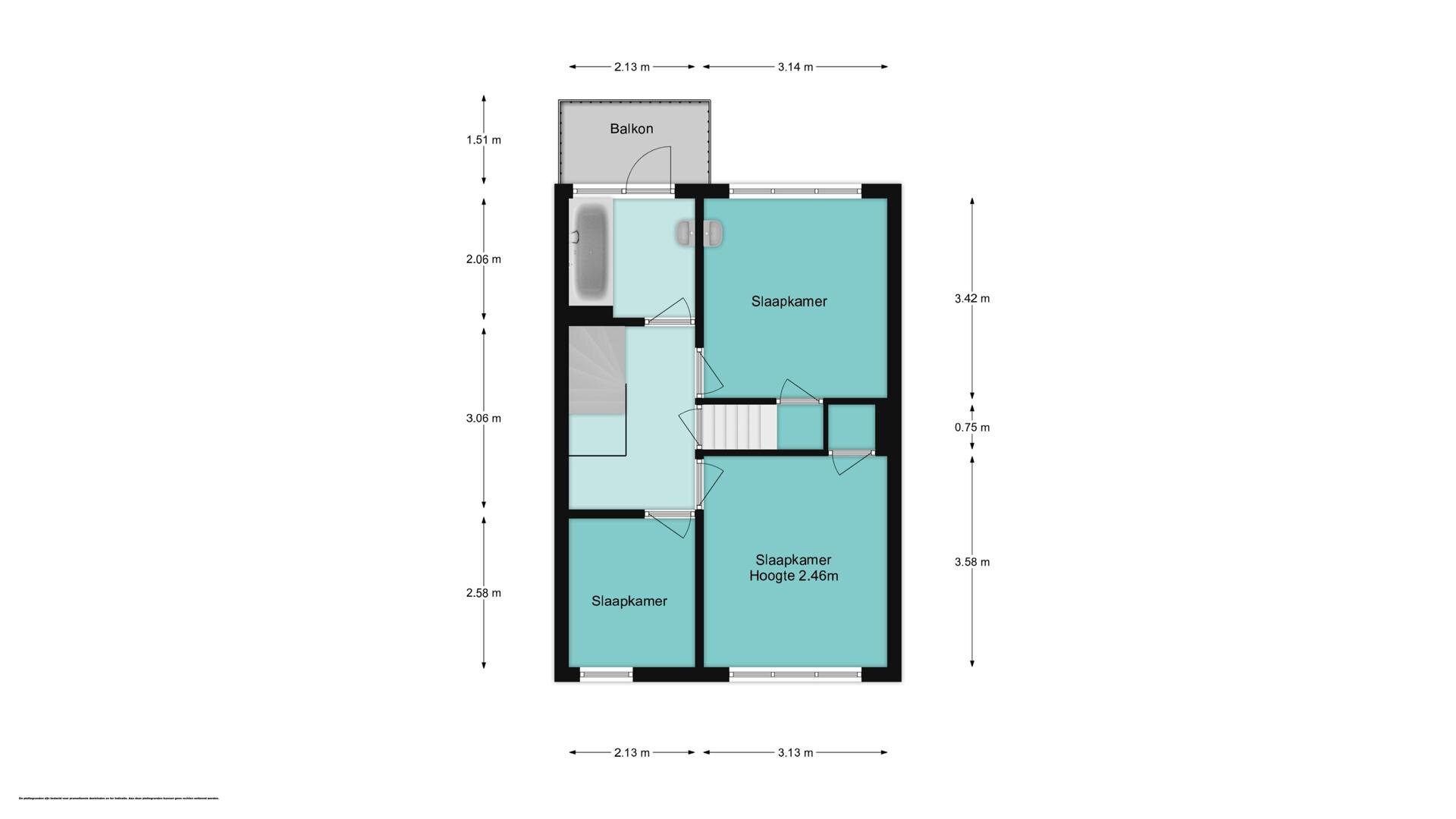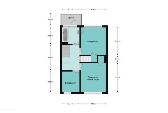 Overloop, 2 goed bemeten slaapkamers die beide zijn voorzien van vaste kasten, 3e kleinere slaap- of werkkamer, badkamer met douche/ligbad, wastafel en deur naar een balkon.