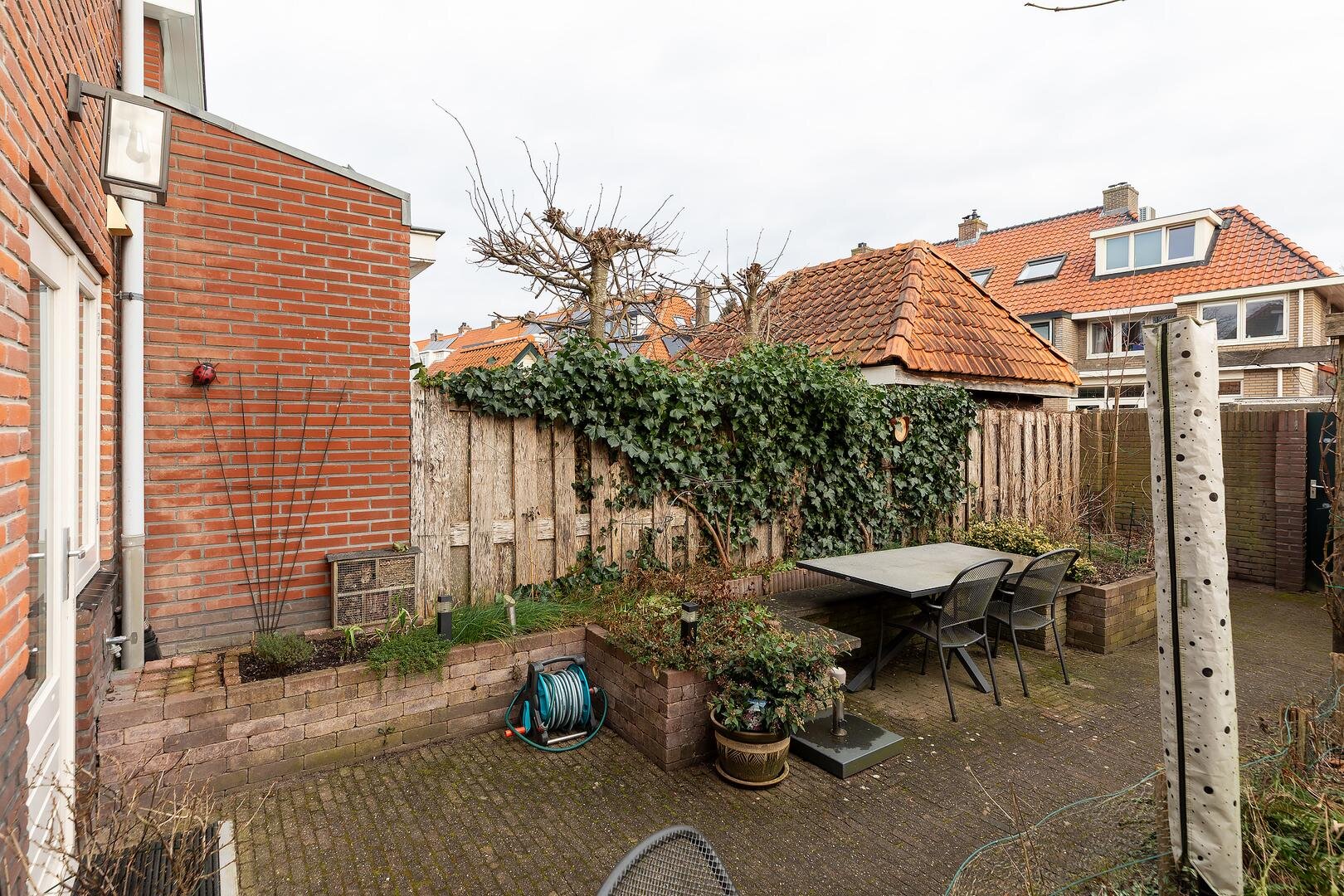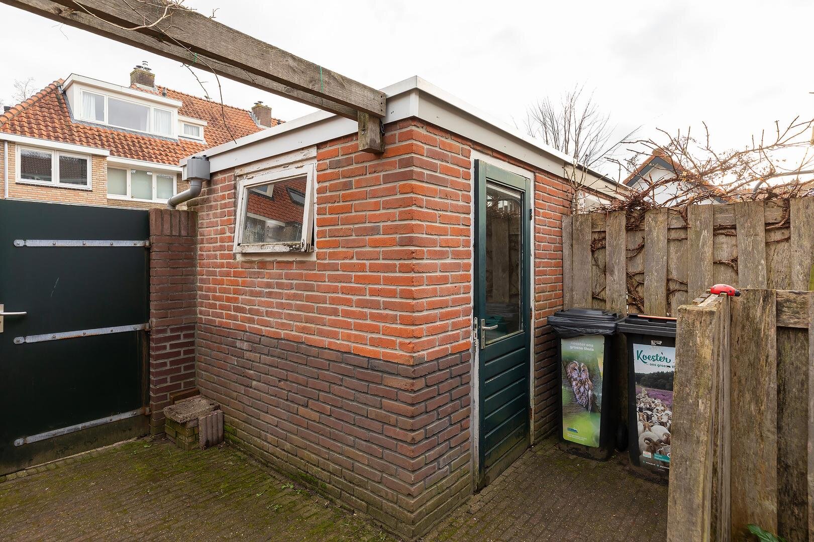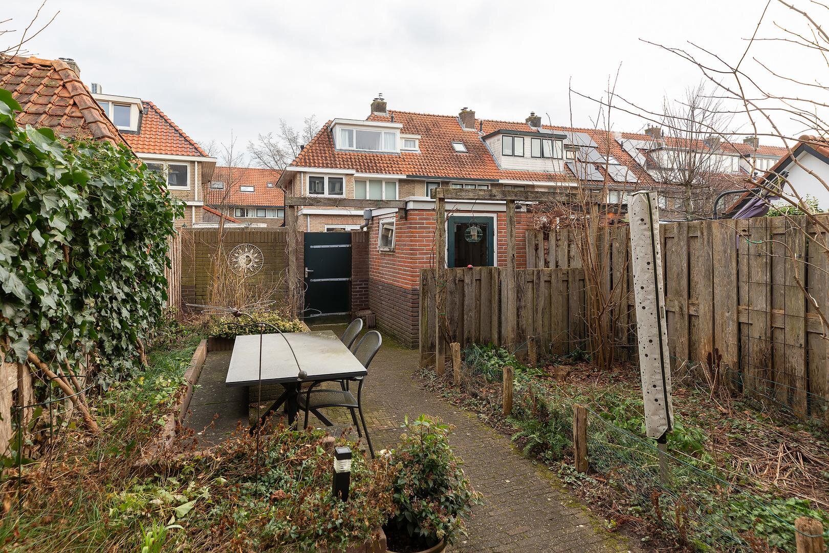 - Ruime achtertuin met schuur en achterom;