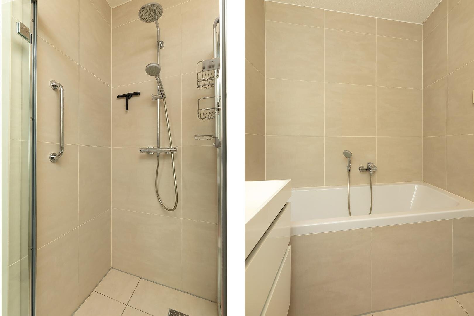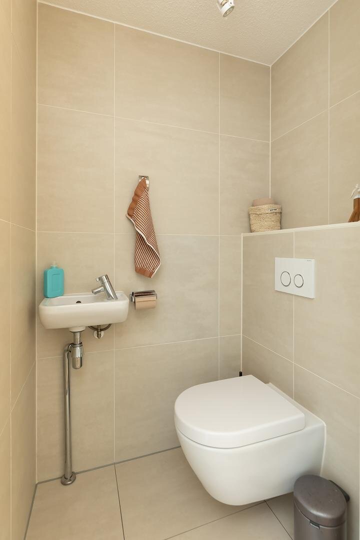 De badkamer is compleet uitgevoerd met ligbad, inloopdouche, toilet en wastafelmeubel. Het geheel wordt gecompleteerd door een separaat gastentoilet, een praktische inpandige berging en een technische ruimte.