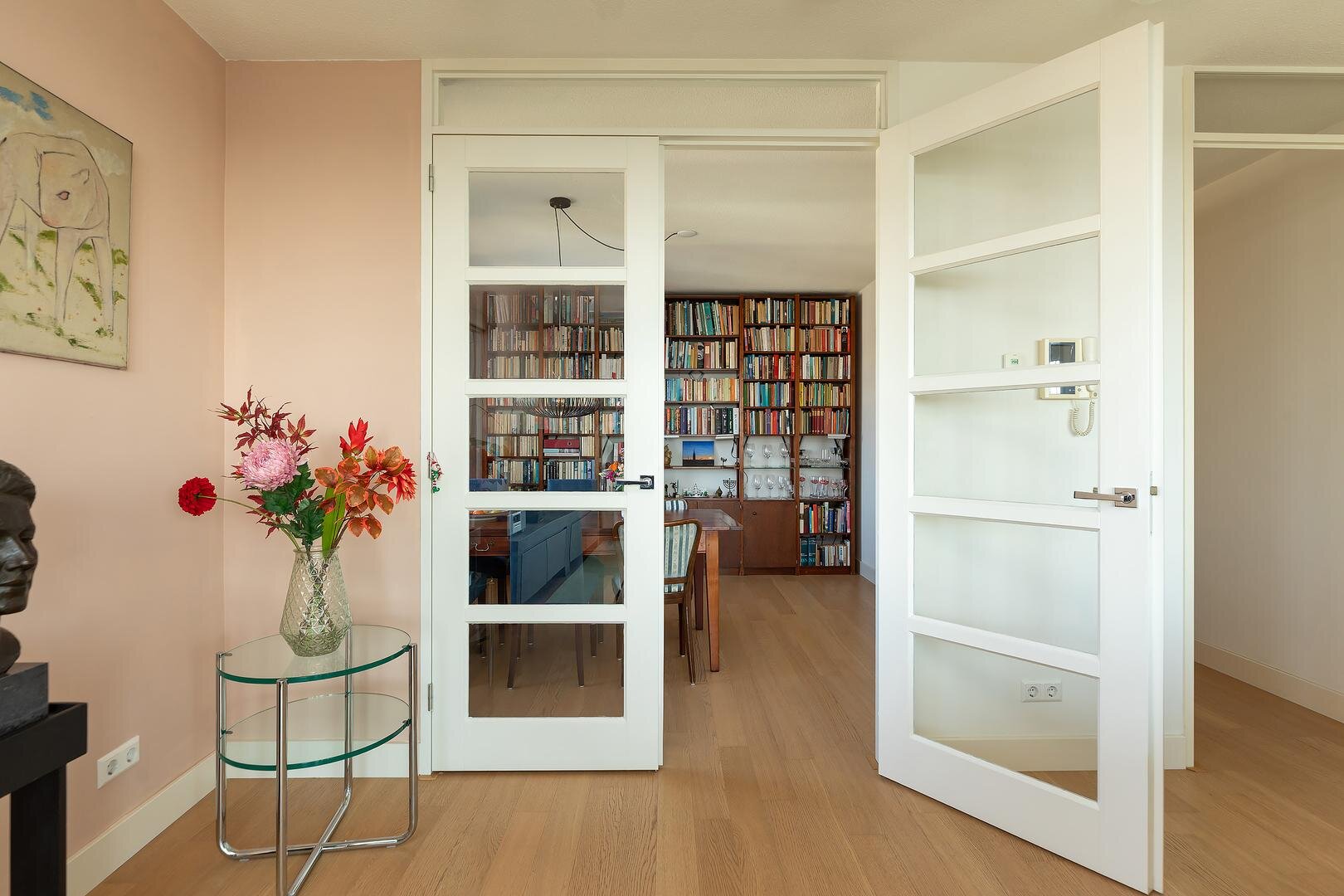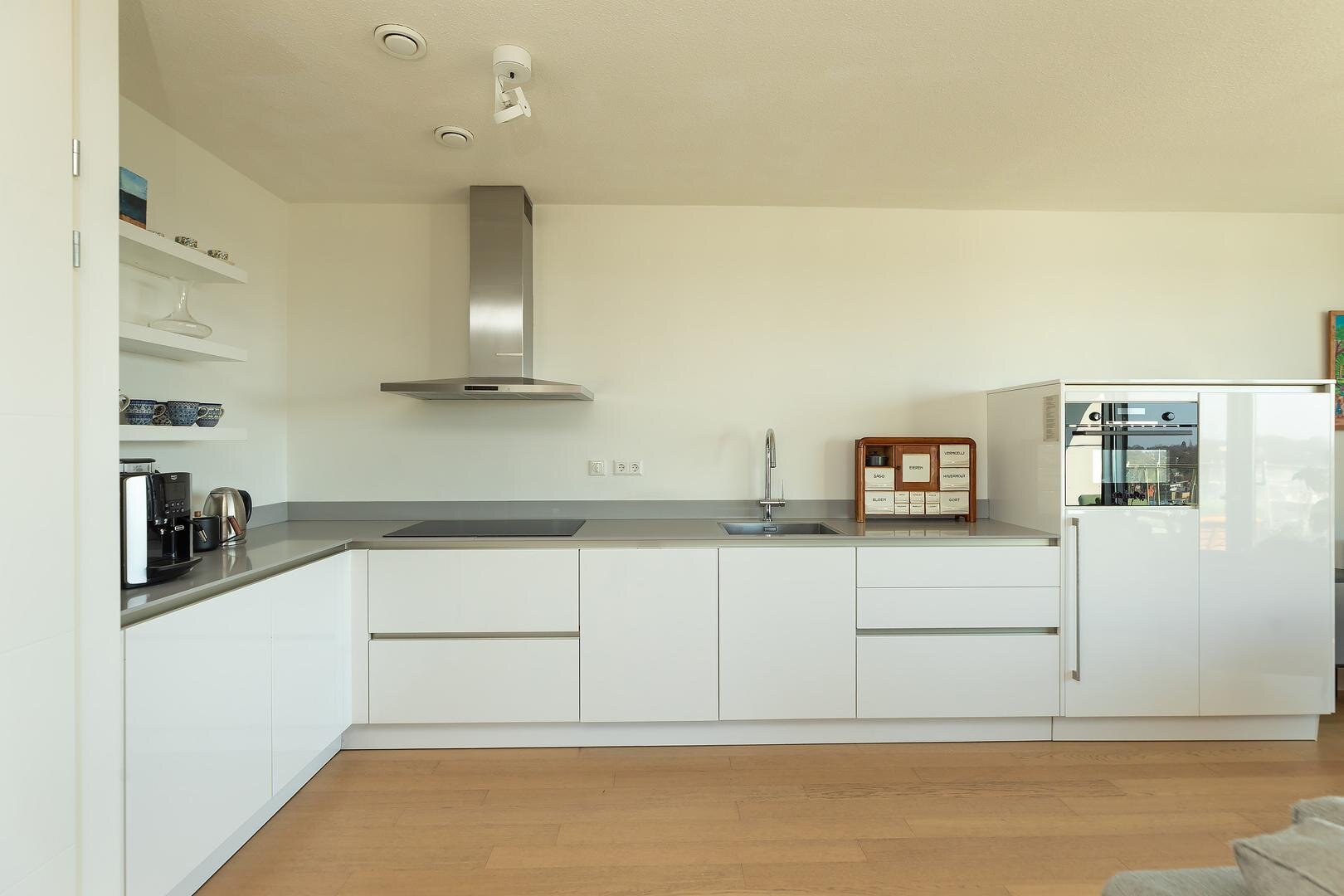 De riante living kenmerkt zich door grote raampartijen en een elegante lichtinval gedurende de dag. De hoogwaardige Siematic keuken vormt een stijlvol geheel met de woonruimte en is voorzien van luxe inbouwapparatuur en een fraai werkblad – een omgeving waar esthetiek en functionaliteit naadloos samenkomen.