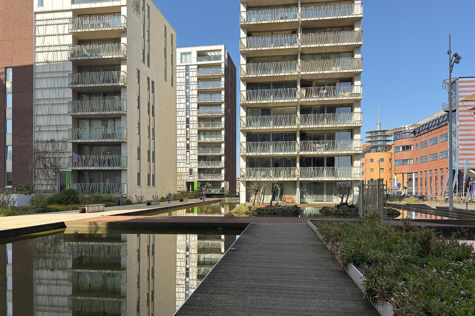 In de onderliggende parkeerkelder beschikt u over een eigen parkeerplaats en separate berging. Het complex onderscheidt zich door zijn verzorgde uitstraling, hoogwaardige afwerking en de fraai onder architectuur aangelegde binnentuin met waterpartij.