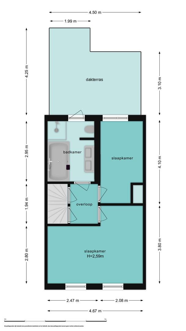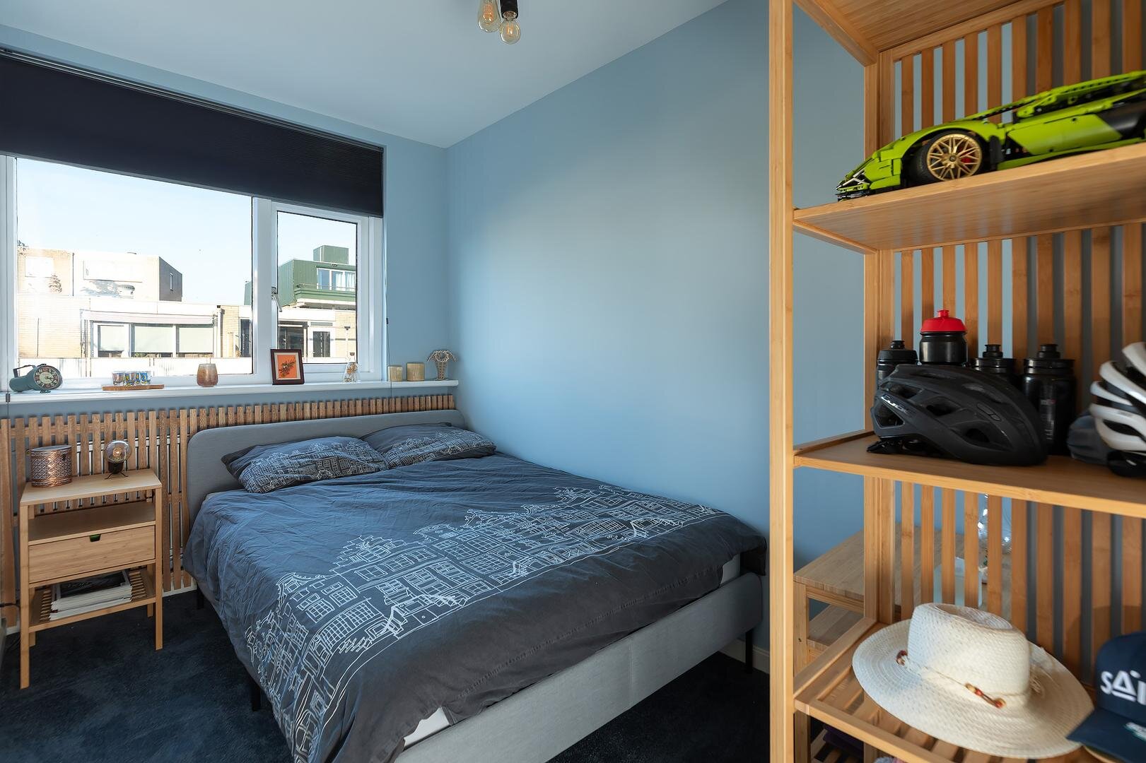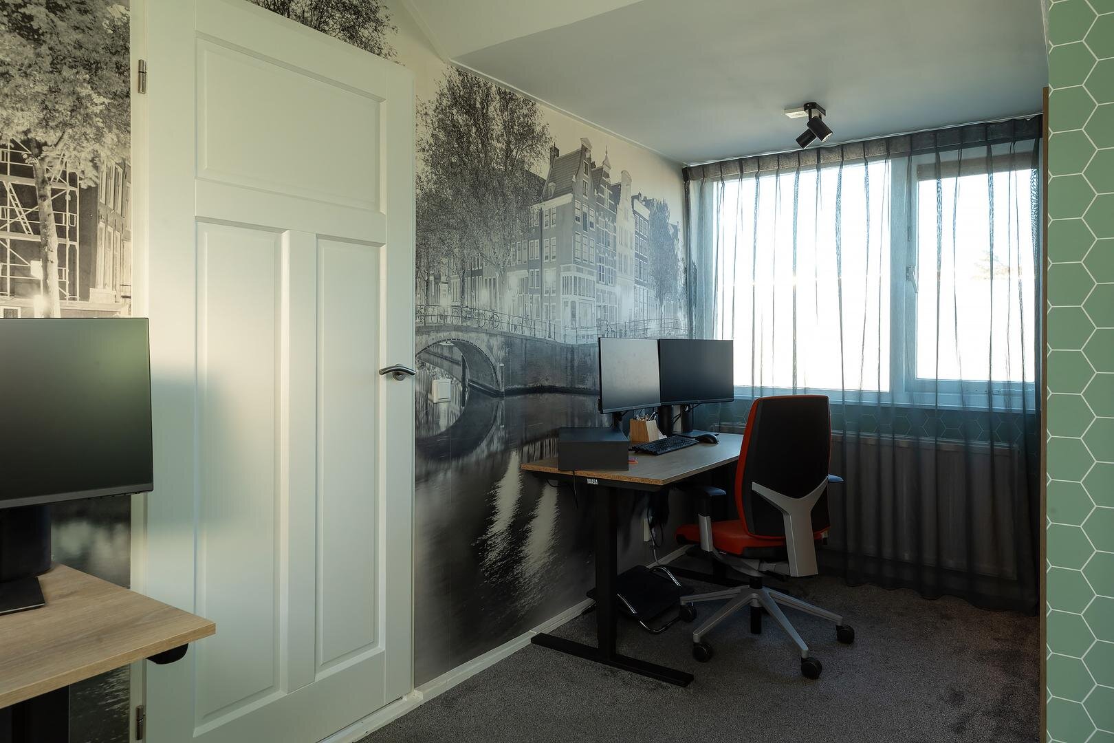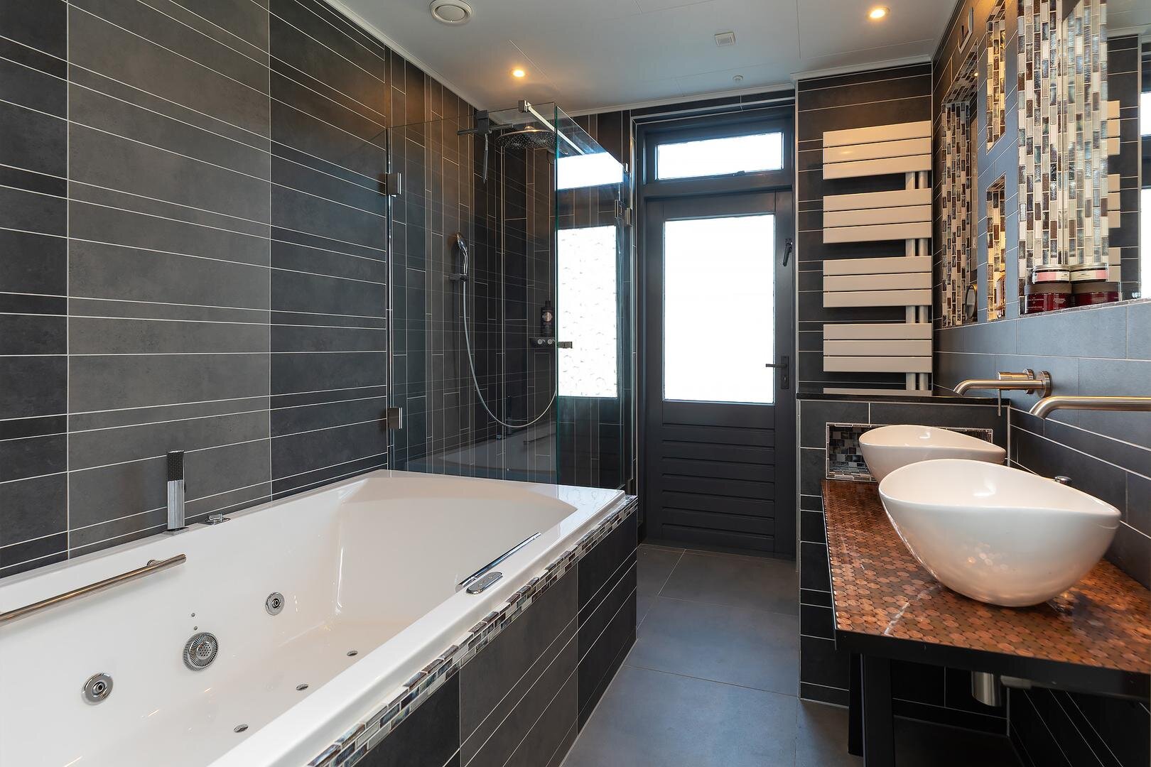 Overloop met toegang tot alle vertrekken. Aan de voorzijde bevindt zich een ruime slaapkamer, aan de achterzijde een tweede slaapkamer. De comfortabele badkamer (2019) is voorzien van een ligbad (whirlpool), inloopdouche, toilet, dubbele wastafel én vloerverwarming. Vanuit de badkamer is er toegang tot het ruime dakterras.