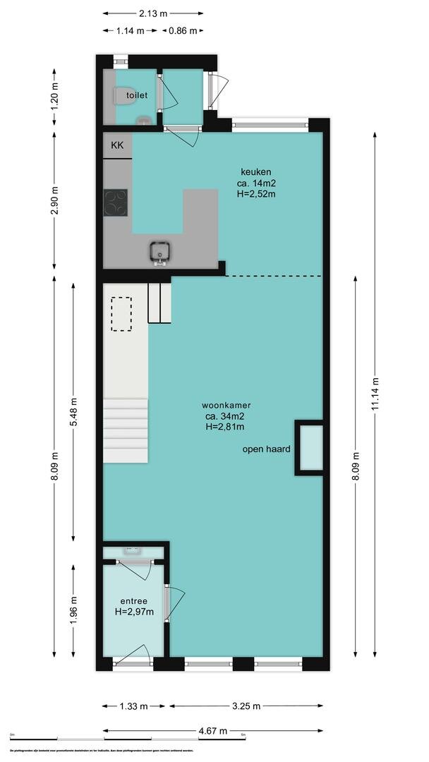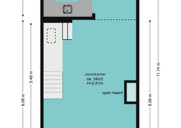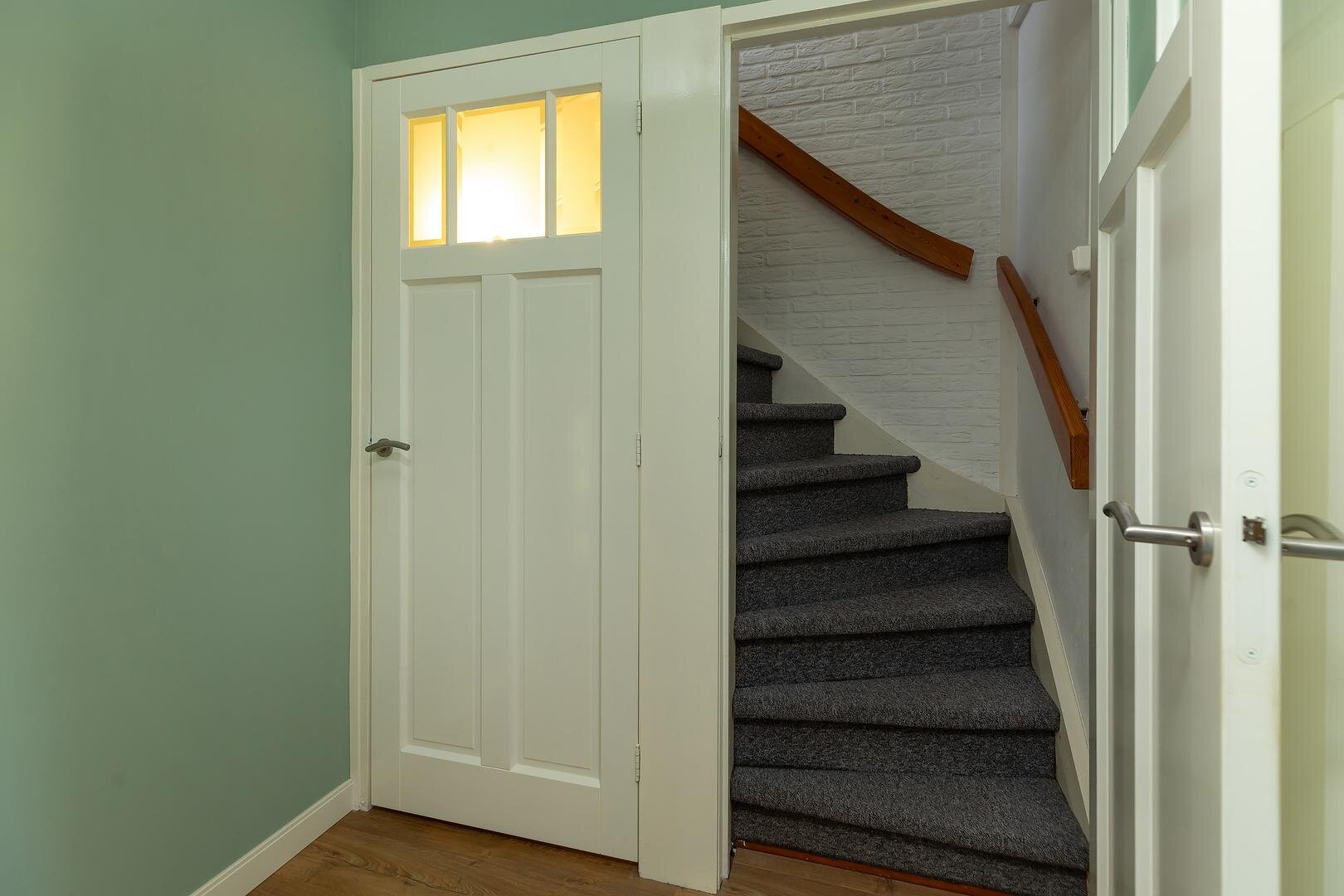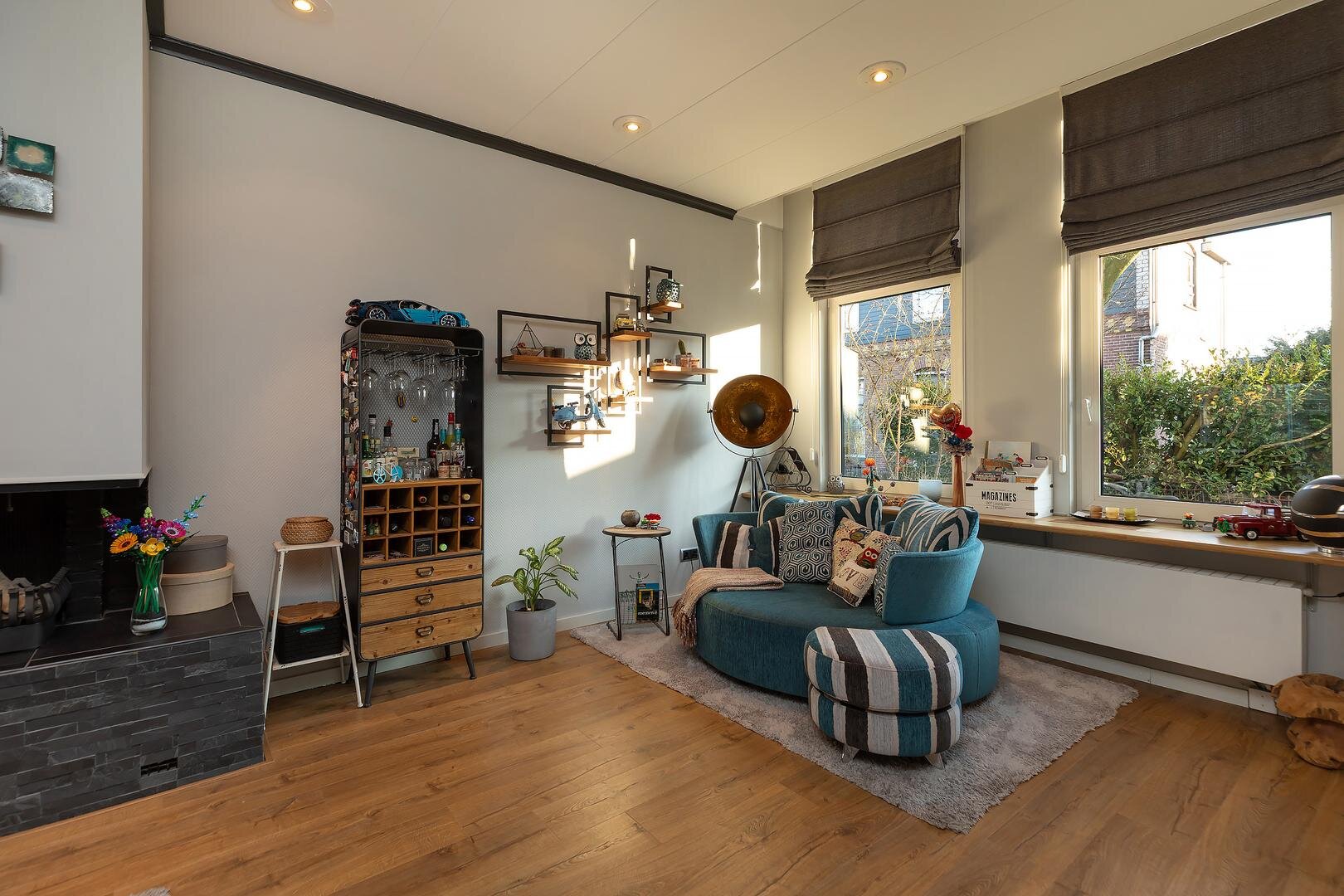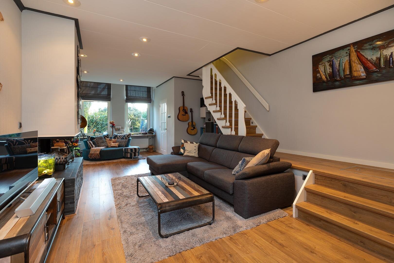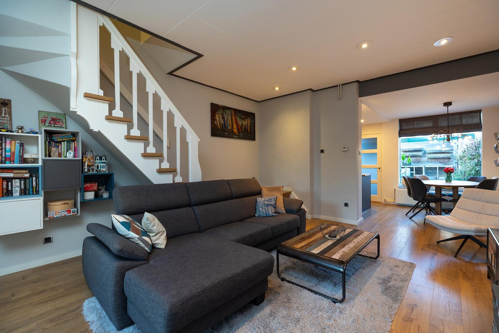 Entree met toegang tot de vernieuwde meterkast en een deur naar de ruime woon-/eetkamer met open keuken. De woonkamer biedt genoeg ruimte voor een comfortabele zithoek en een royale eettafel. In de woonkamer bevindt zich tevens de trap naar de eerste verdieping. Vanuit de keuken (2021) is er toegang tot een klein halletje dat leidt naar het toilet. Vanuit hier is er toegang tot de tuin, waar zich ook de zeer ruime schuur bevindt die goed bereikbaar is met bijvoorbeeld een motor.