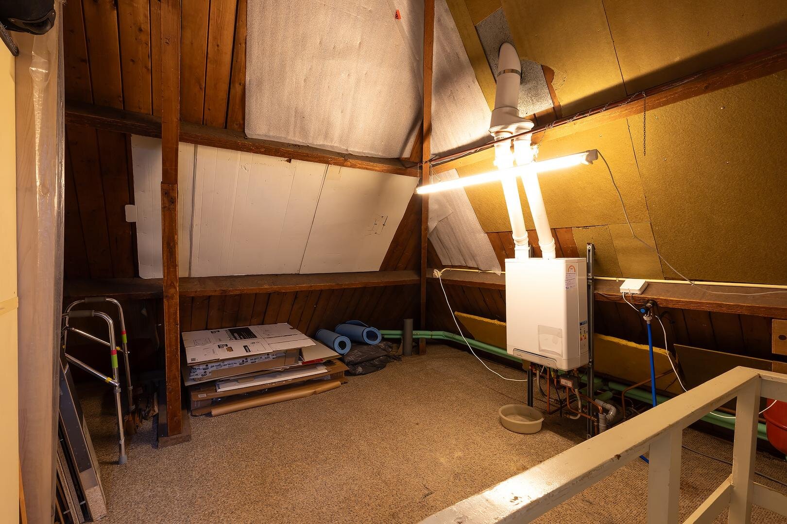 Tweede verdieping: via vaste trap bereikbare ruime voorzolder met c.v.-ketel (Intergas 2021), 4e slaapkamer aan de achterzijde met wastafel 2 Velux dakramen. Deze zolderverdieping biedt volop mogelijkheden tot een indeling met een extra (bad)kamer!