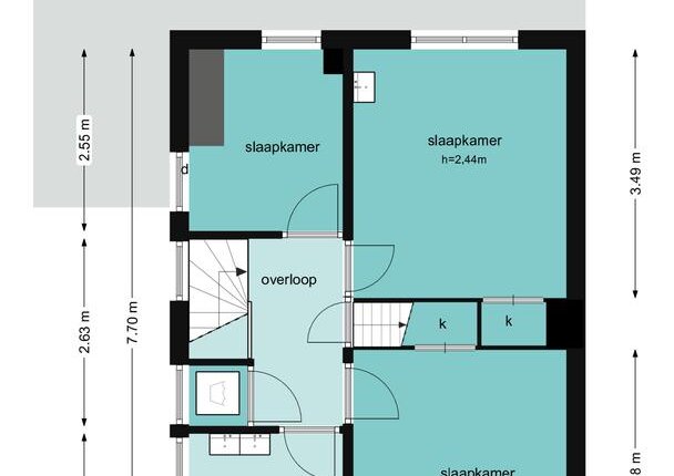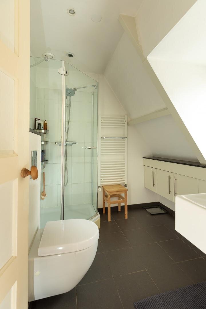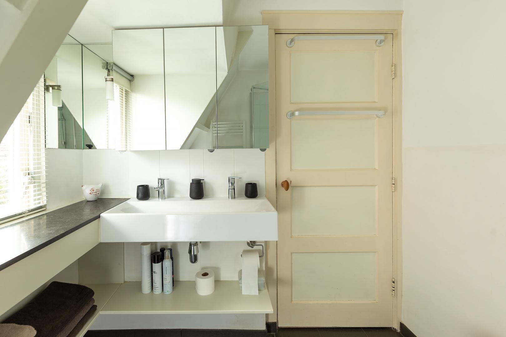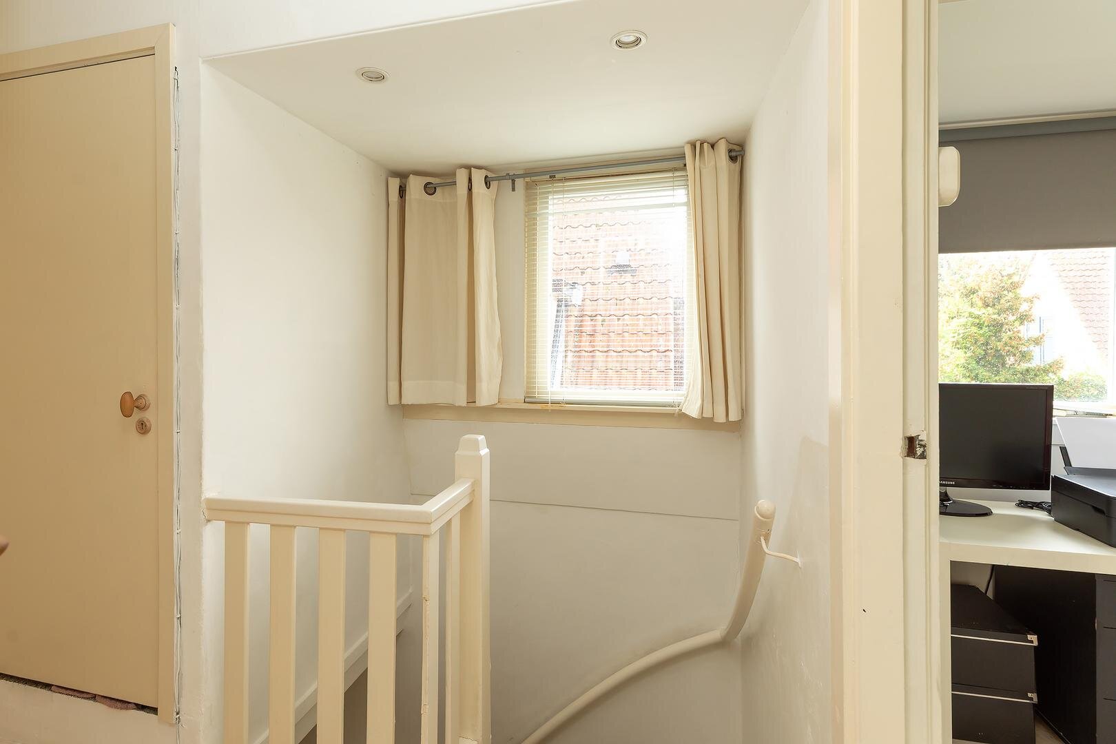 Eerste verdieping: overloop met daglicht en kast met wasmachine- en drogeraansluiting, drie in grootte variërende slaapkamers waarvan 2 slaapkamers met vaste kasten. De grote slaapkamer aan de achterzijde beschikt tevens over een wastafel. Nette moderne badkamer aan de voorzijde met douche, dubbele wastafel, 2e toilet en handdoekradiator.