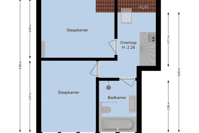De 2e verdieping is ingemeten als overige inpandige ruimte van 9 m², deze verdieping is zeer functioneel te gebruiken als 3e slaapkamer of als werkkamer.