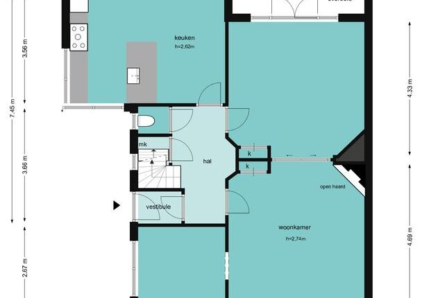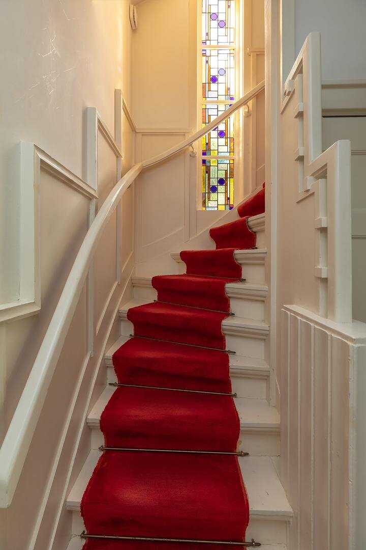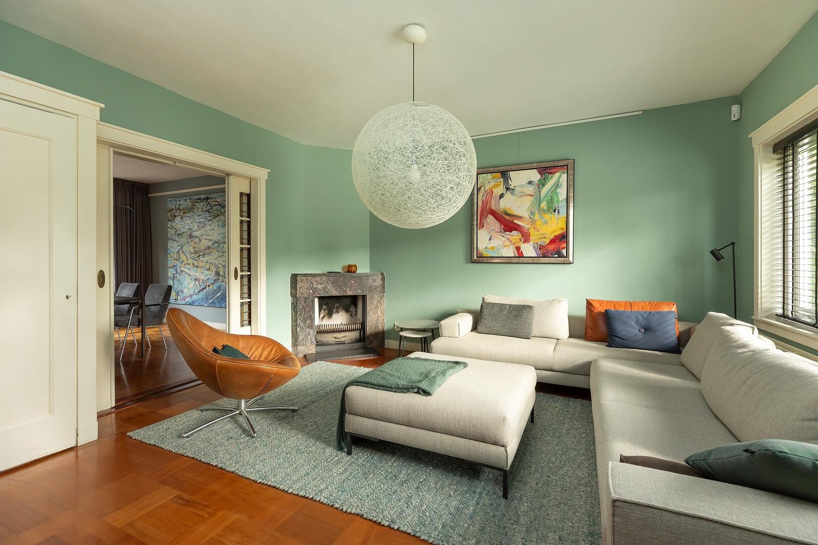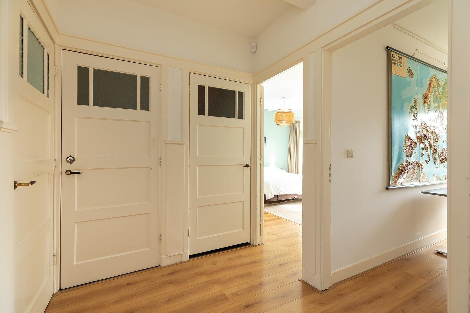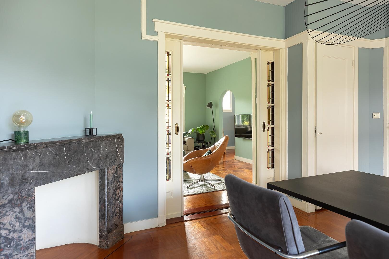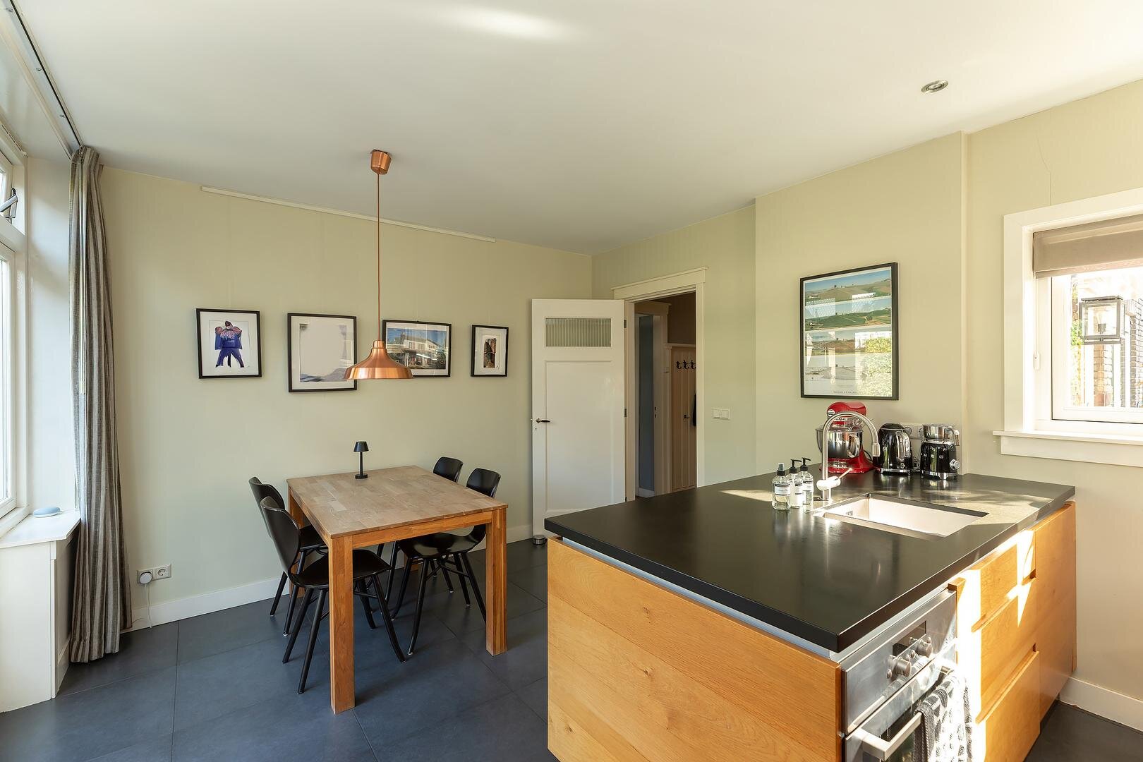 Begane grond: via de entree met vestibule met origineel tegelwerk komt u in de hal met trapopgang, toilet en toegang tot de provisiekelder (14 m²). De sfeervolle woonkamer en suite met zijkamer is voorzien van een parketvloer, open haard, glas-in-lood schuifdeuren en openslaande deuren naar de tuin. Aan de achterzijde vindt u de in 2008 uitgebouwde moderne eetkeuken met schiereiland, vloerverwarming, hoogwaardige inbouwapparatuur en eveneens toegang tot de tuin.