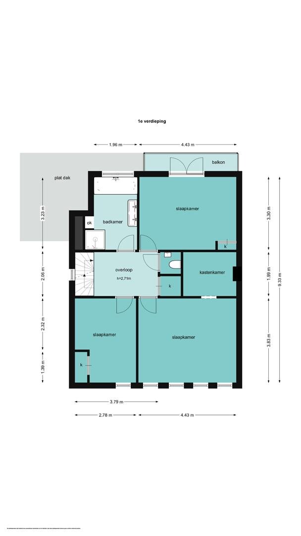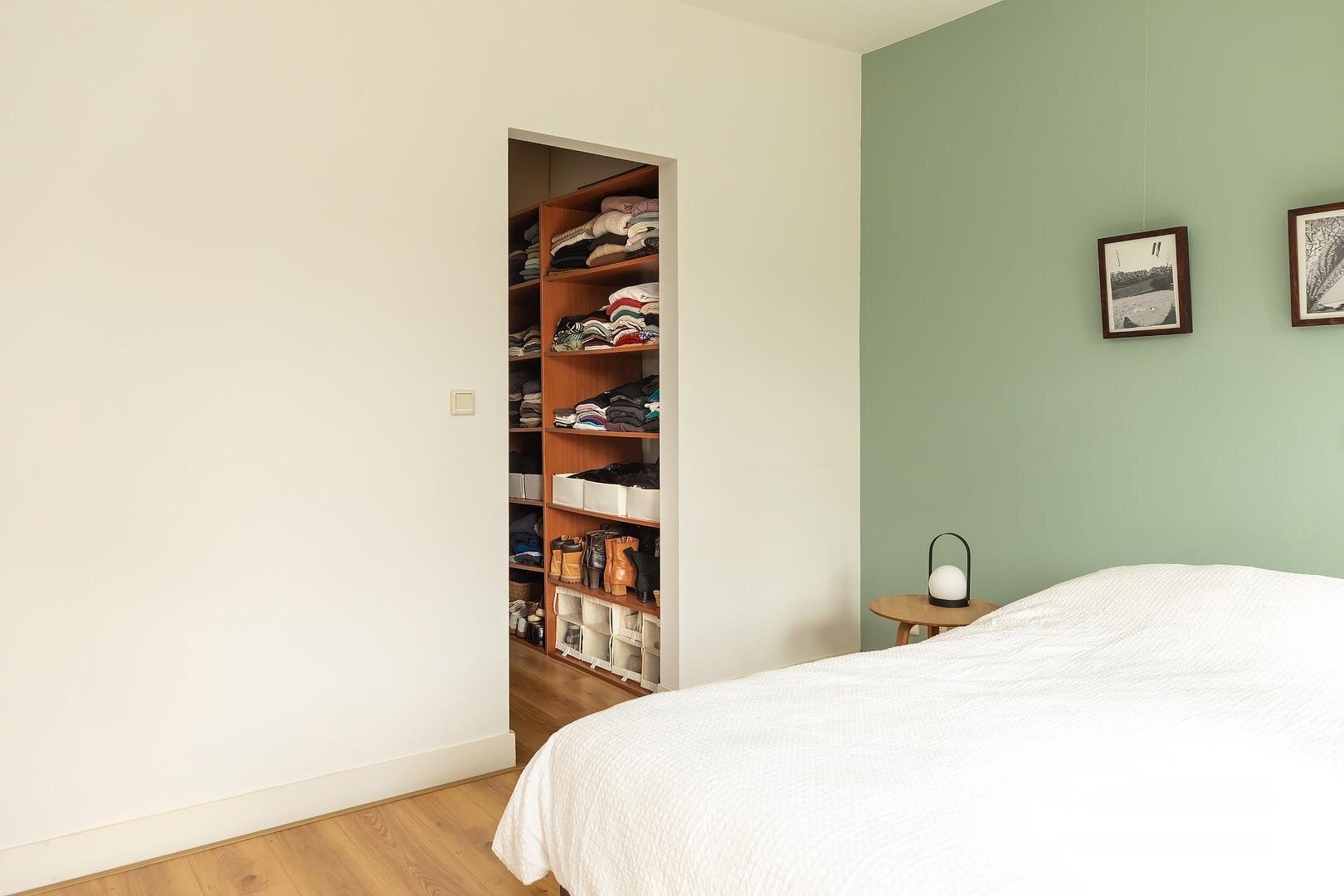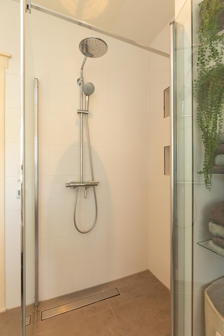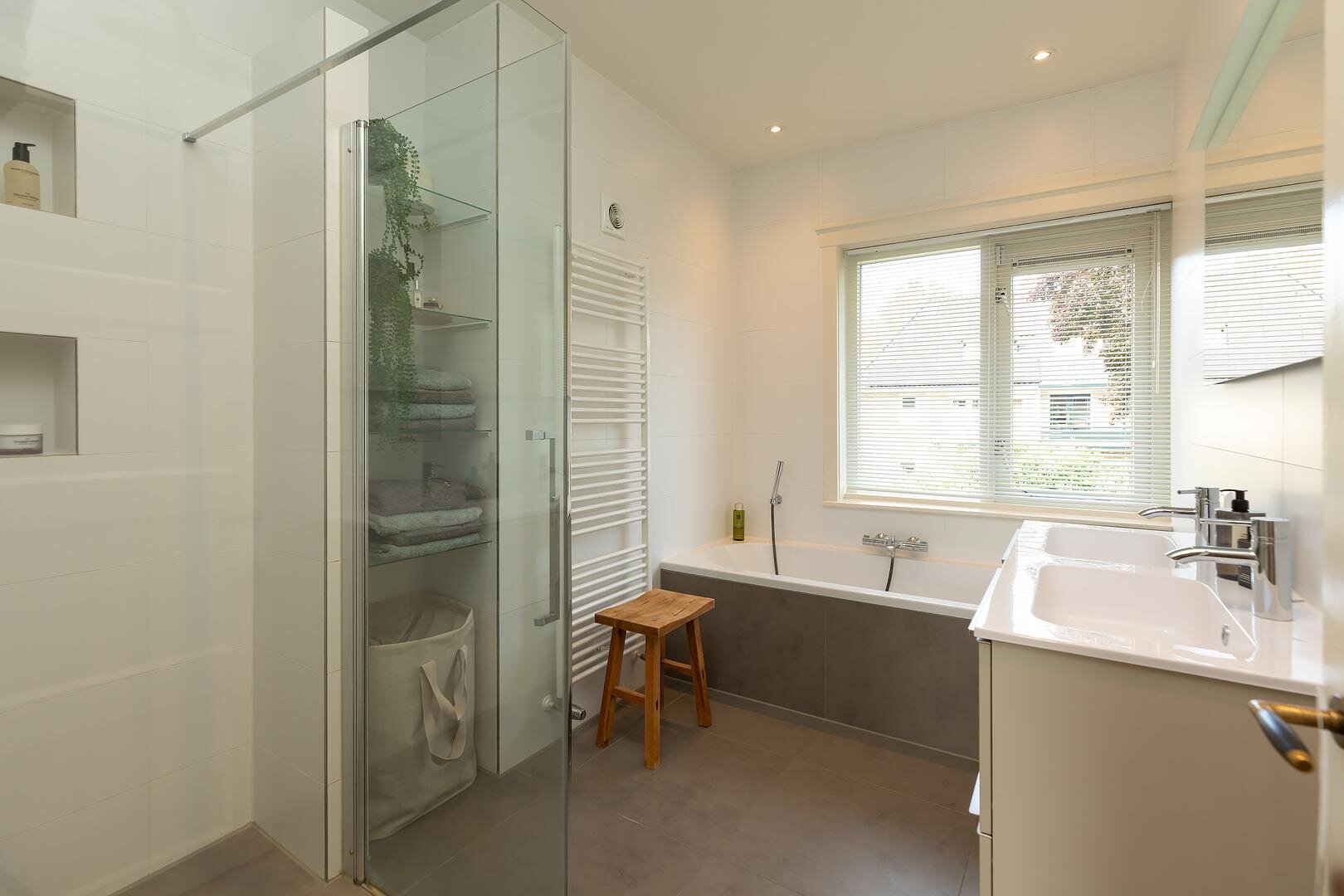 Eerste verdieping: ruime overloop met toilet en bergkast, drie goed bemeten slaapkamers – waaronder één met royale inloopkast en één met toegang tot het balkon. De moderne badkamer is compleet met ligbad, inloopdouche en dubbele wastafel. De gehele eerste verdieping is voorzien van een laminaatvloer.