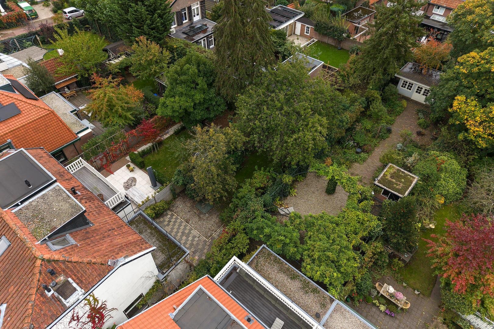 Charmante, half vrijstaande villa met prachtige tuin, ruime schuur en zeer besloten ligging aan de Taludweg aan de rand centrum van Hilversum.