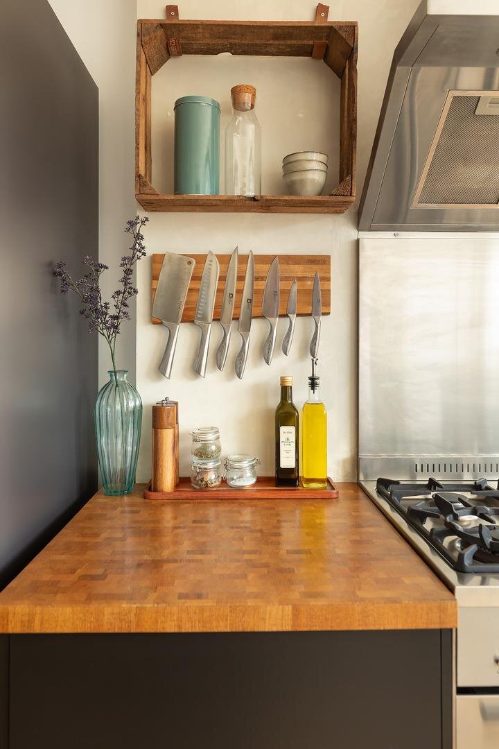 Kast voor de wasmachine-/drogeropstelling en toegang tot de achterdeur naar de fraaie tuin.