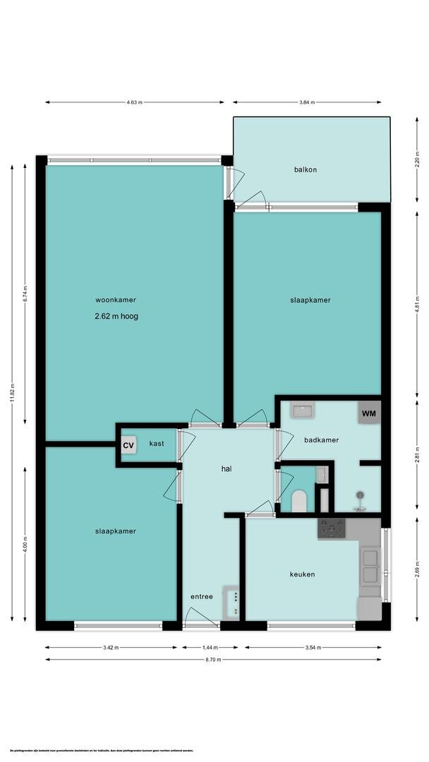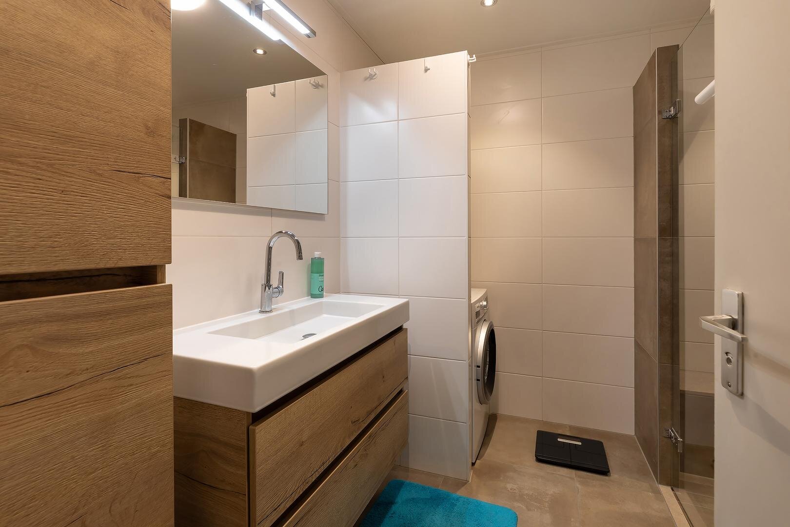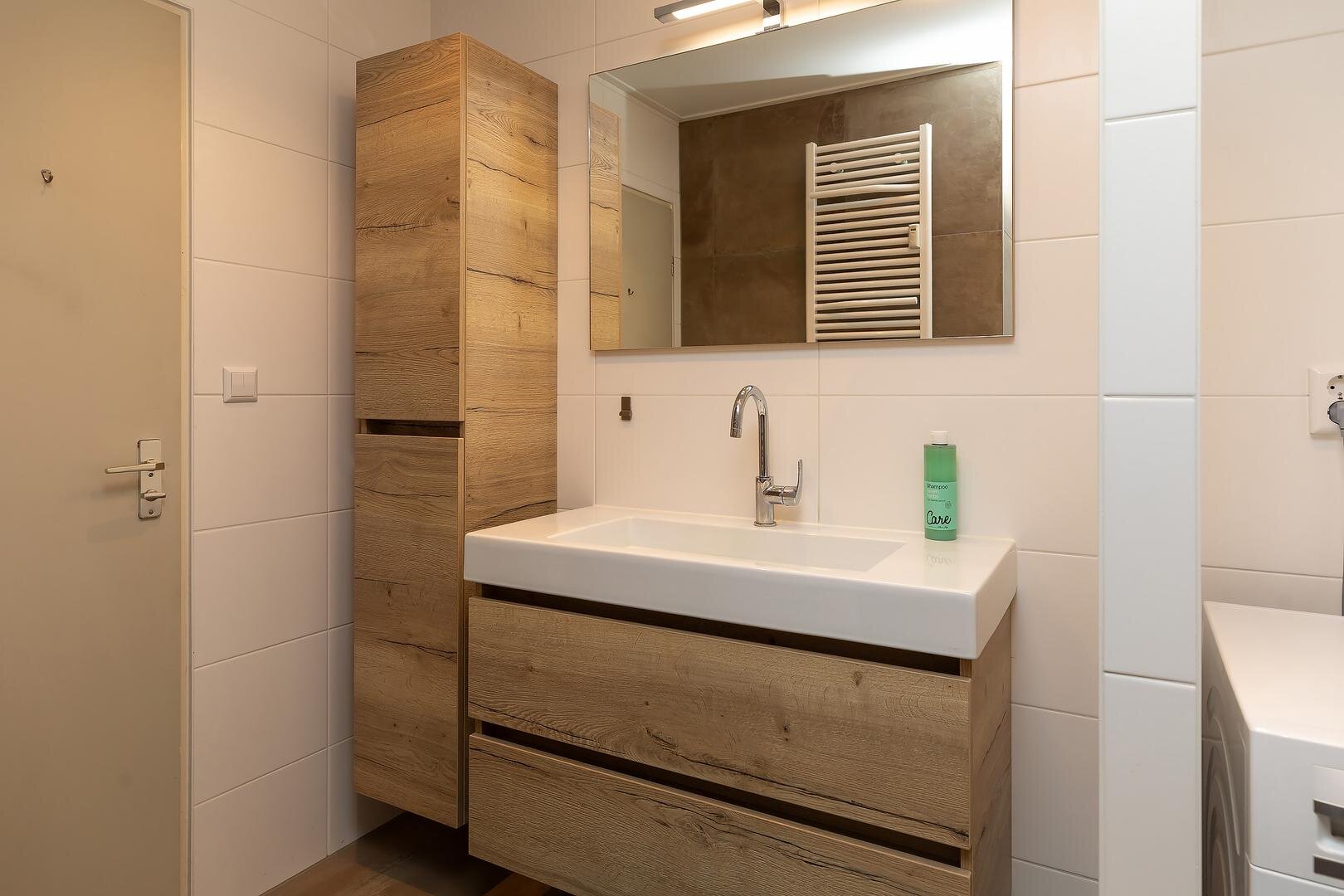 Entree, ruime hal met garderobe en meterkast, modern toilet met fontein en een praktische bergkast met boiler. De royale en lichte woonkamer heeft directe toegang tot het balkon aan de voorzijde. De moderne keuken is ruim opgezet en voorzien van diverse inbouwapparatuur.