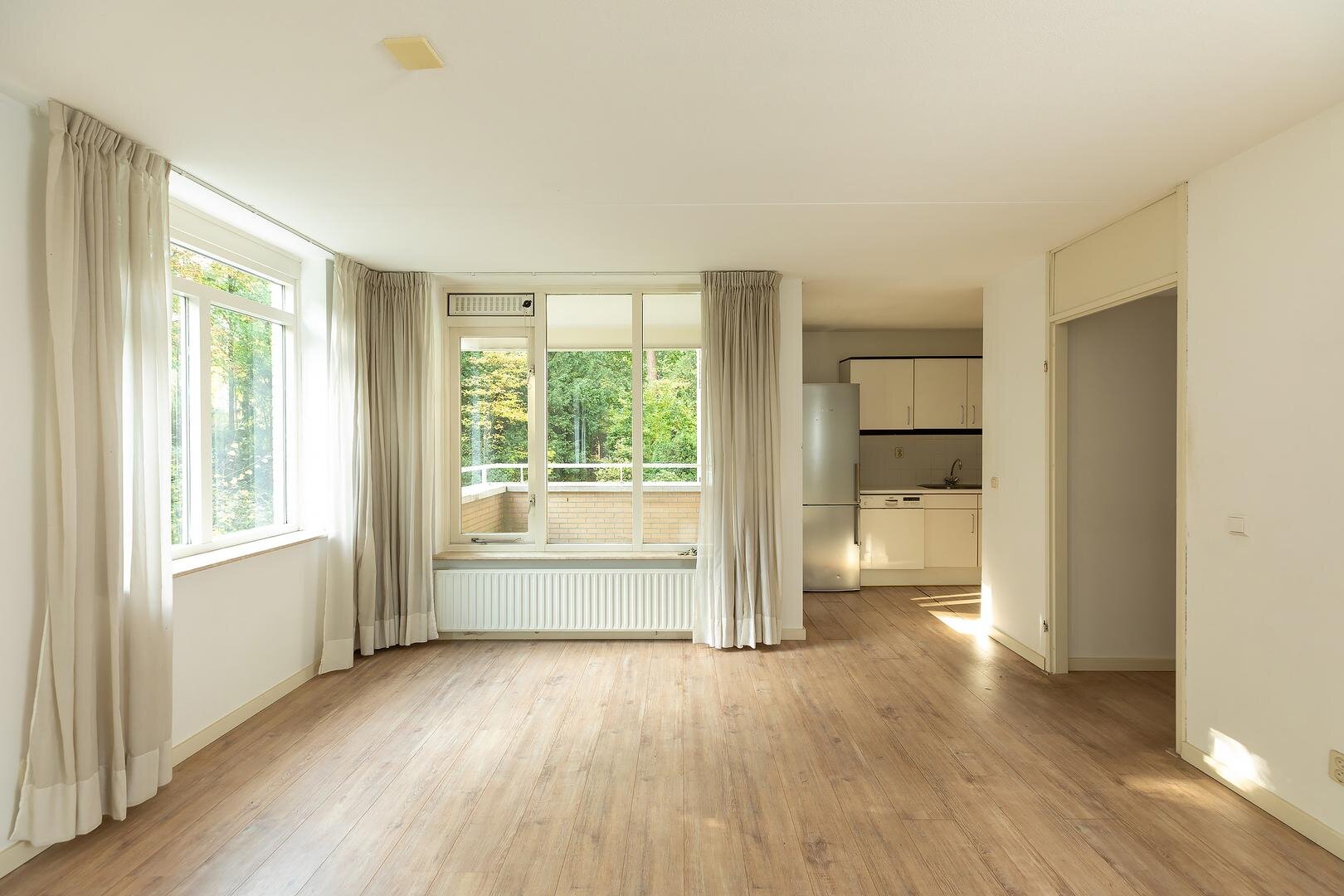Licht en ruim 3-kamerappartement met zonnig terras en eigen inpandige garage aan de Utrechtseweg 36-1 in Hilversum