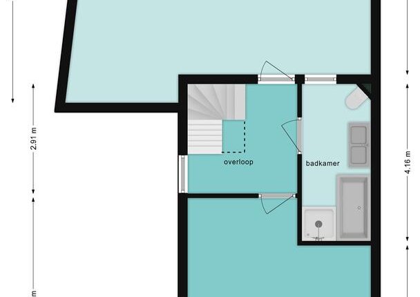 Overloop, badkamer met ligbad, separate douche, dubbele wastafel en tweede toilet. De riante hoofdslaapkamer (voorheen twee kamers) biedt volop ruimte en kan indien gewenst eenvoudig weer worden opgesplitst in twee aparte kamers. Vanaf de overloop is er toegang tot het zeer ruime dakterras, waar je in alle rust kunt genieten van de zon en het uitzicht over de omgeving.