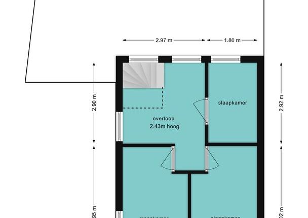 Overloop met toegang tot twee ruime slaapkamers en een derde, kleinere slaapkamer ideaal als kinderkamer, werkkamer of te realiseren 2e badkamer.