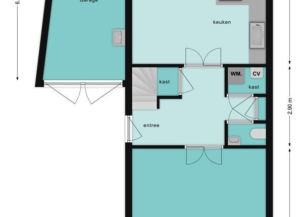 Entree, hal met garderobekast, kast met CV-installatie en aansluiting voor wasmachine en droger, modern toilet. Aan de voorzijde van de woning bevindt zich de heerlijke, ruime woonkamer met open haard. Aan de achterzijde ligt de tuingerichte woonkeuken, voorzien van alle moderne inbouwapparatuur en met directe toegang tot de achtertuin.