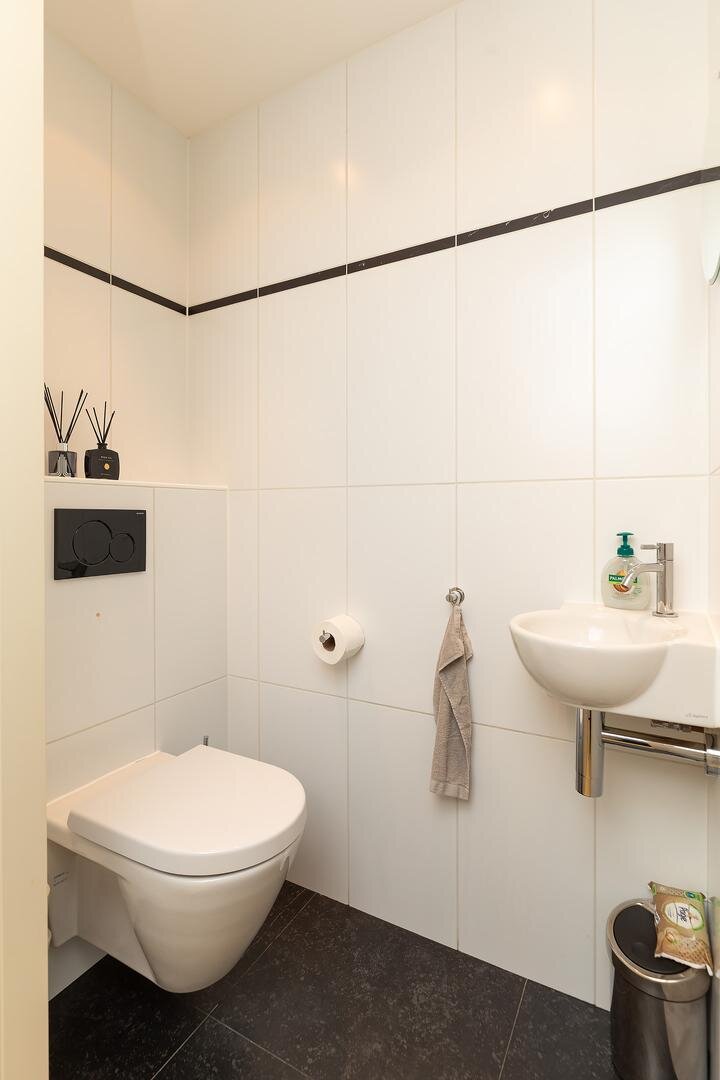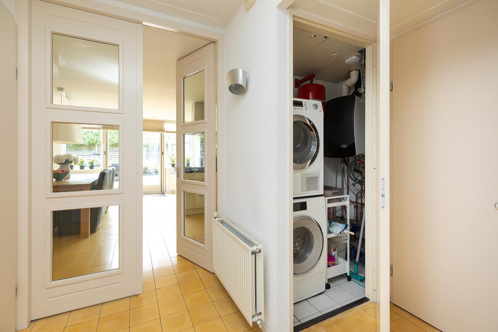 Entree, hal met garderobekast, kast met CV-installatie en aansluiting voor wasmachine en droger, modern toilet. Aan de voorzijde van de woning bevindt zich de heerlijke, ruime woonkamer met open haard. Aan de achterzijde ligt de tuingerichte woonkeuken, voorzien van alle moderne inbouwapparatuur en met directe toegang tot de achtertuin.