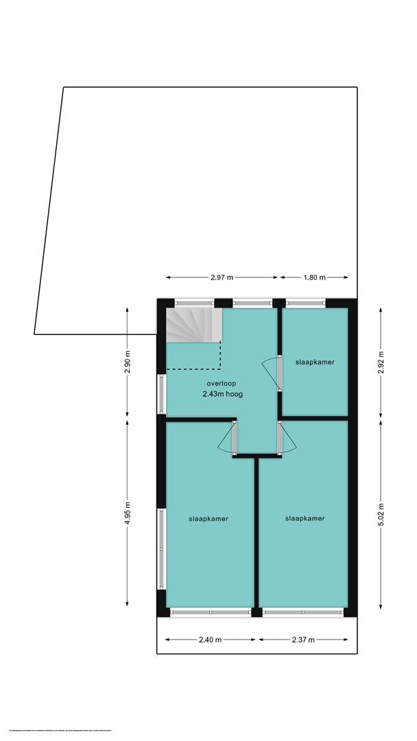 Overloop met toegang tot twee ruime slaapkamers en een derde, kleinere slaapkamer ideaal als kinderkamer, werkkamer of te realiseren 2e badkamer.