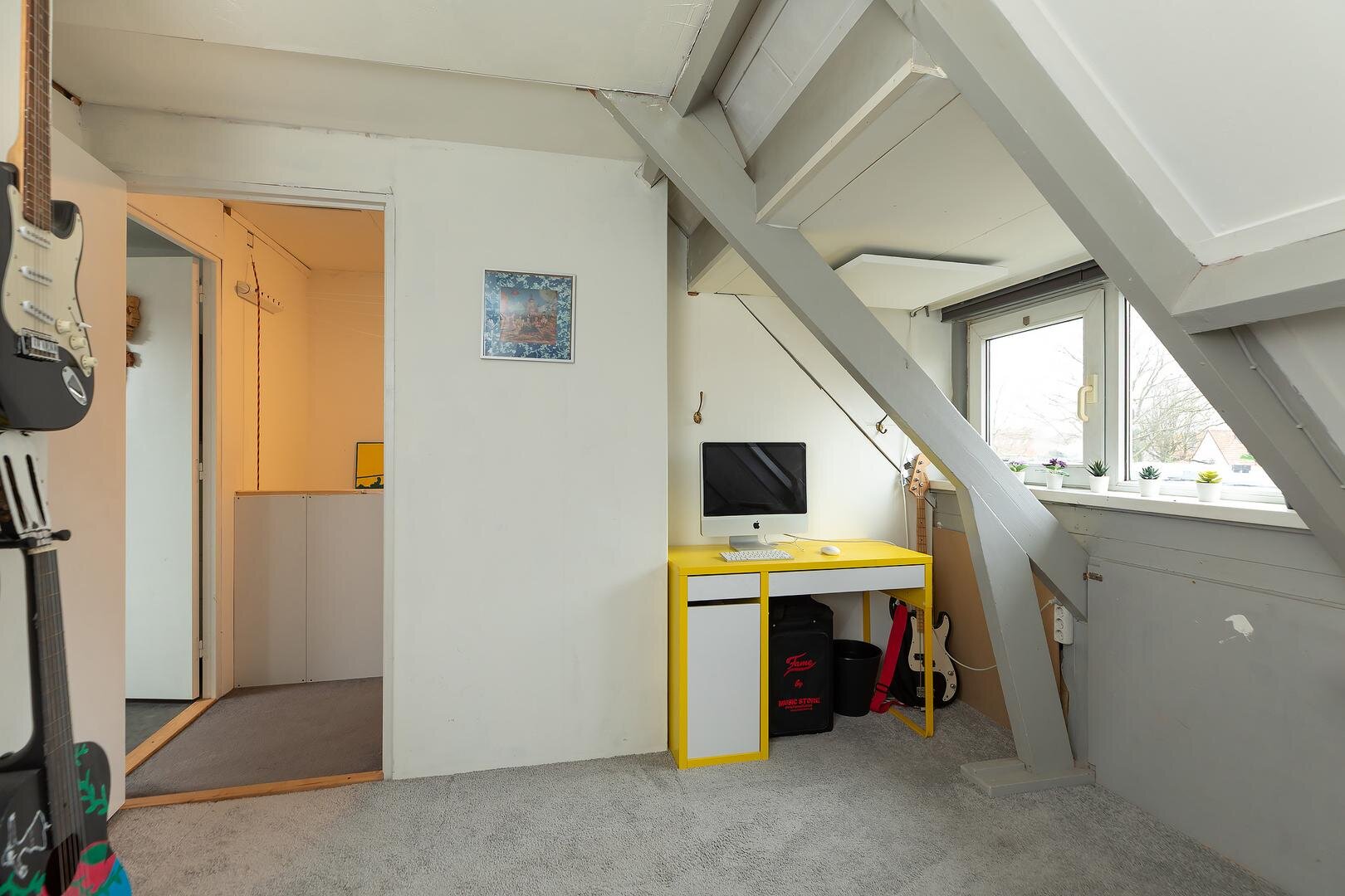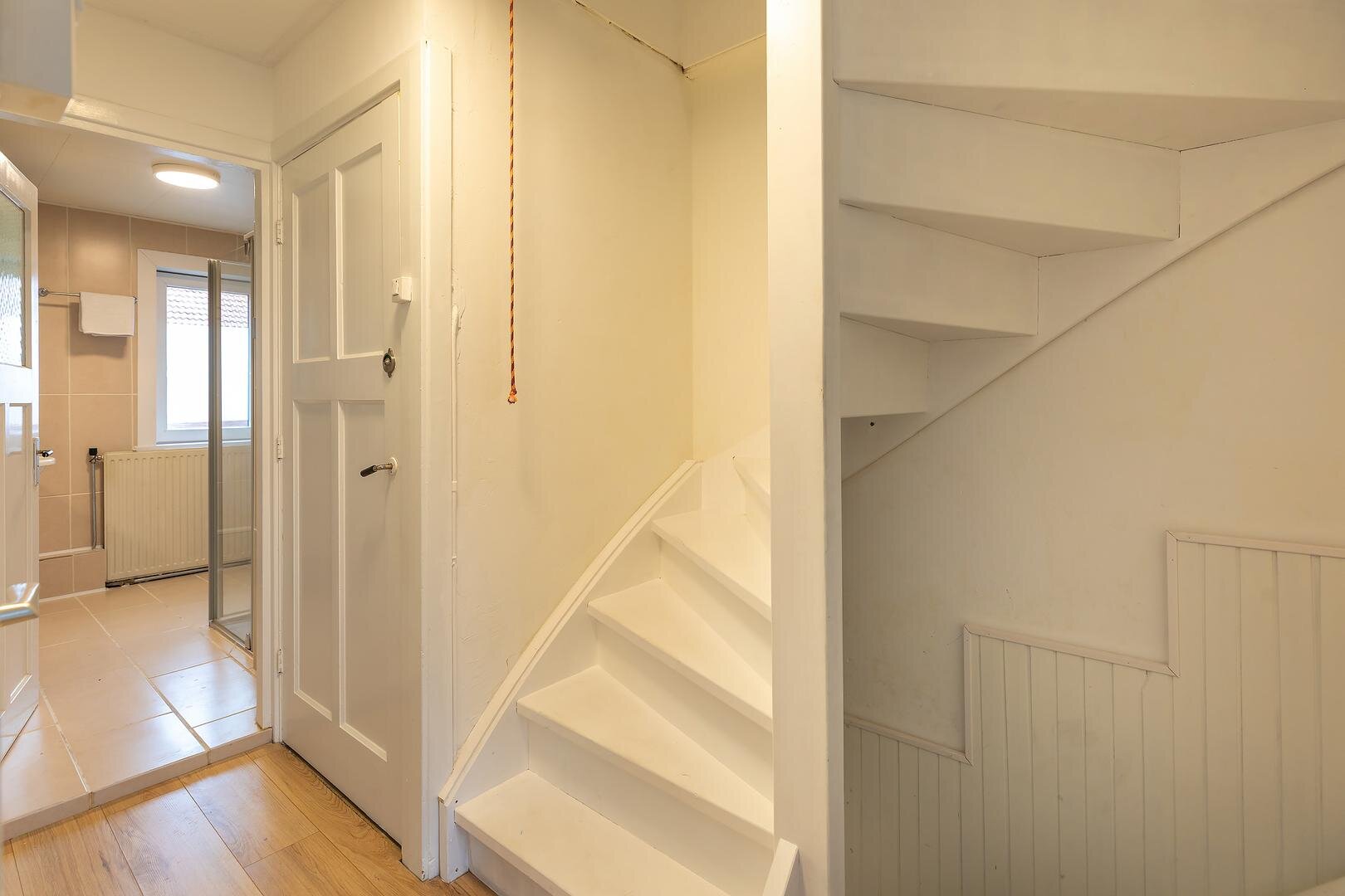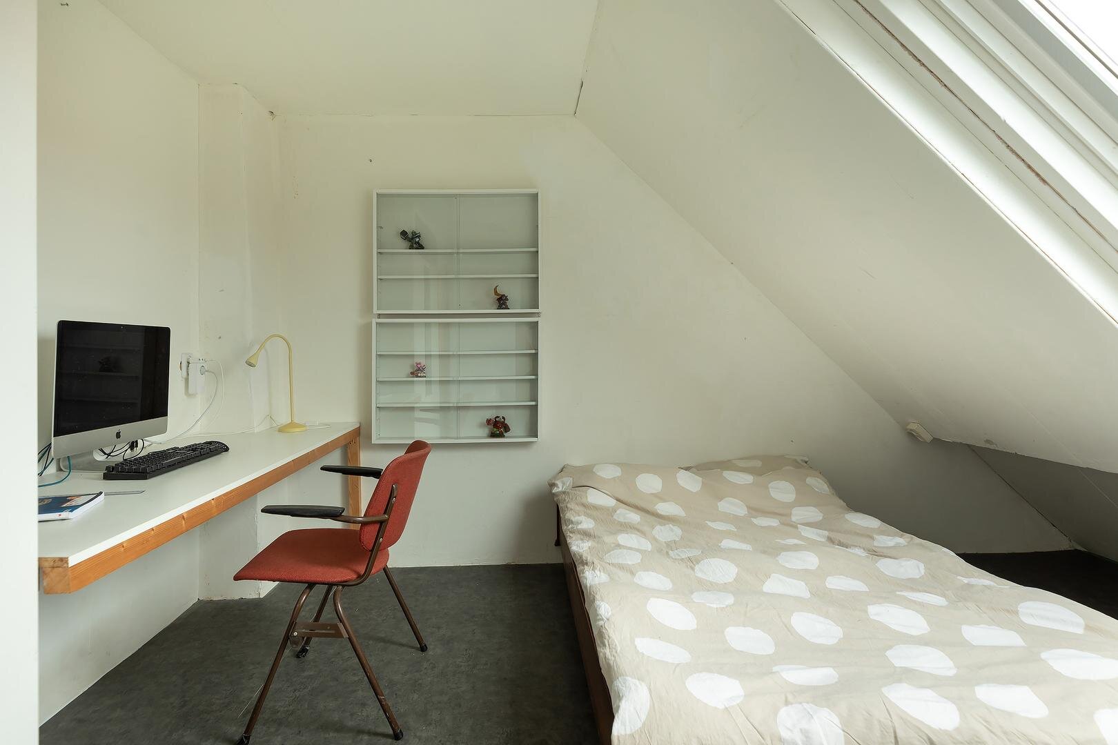 2e verdieping: via vaste trap bereikbare voorzolder met toegang naar de bergvliering, wasruimte met aansluiting wasapparatuur en c.v.-ketel, slaapkamer aan achterzijde met dakkapel en ruime slaapkamer aan de voorzijde met 2 Velux dakramen.