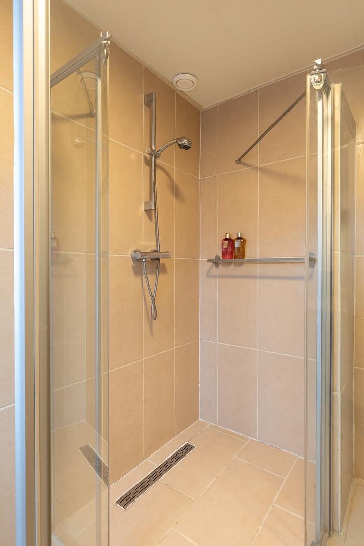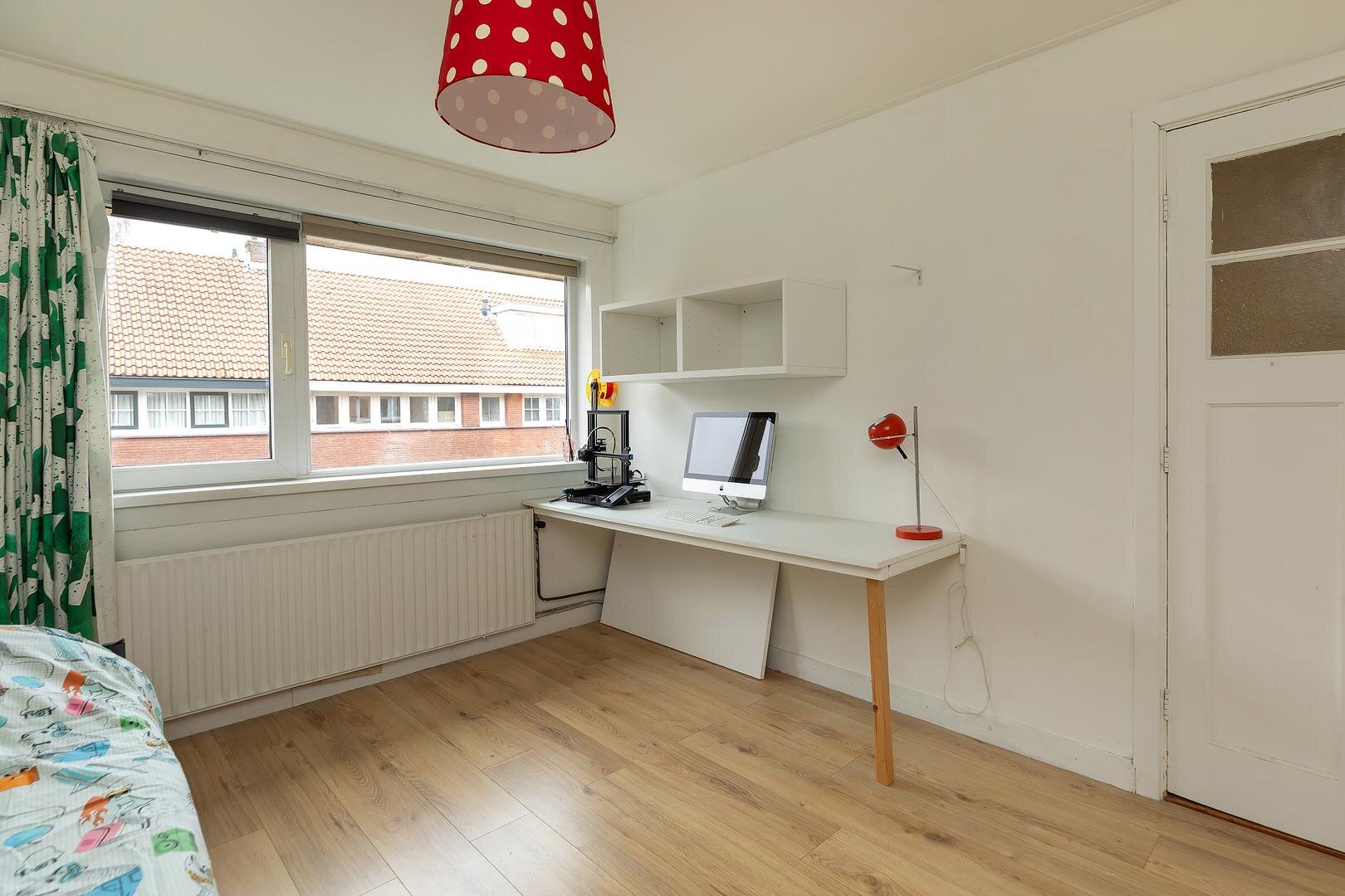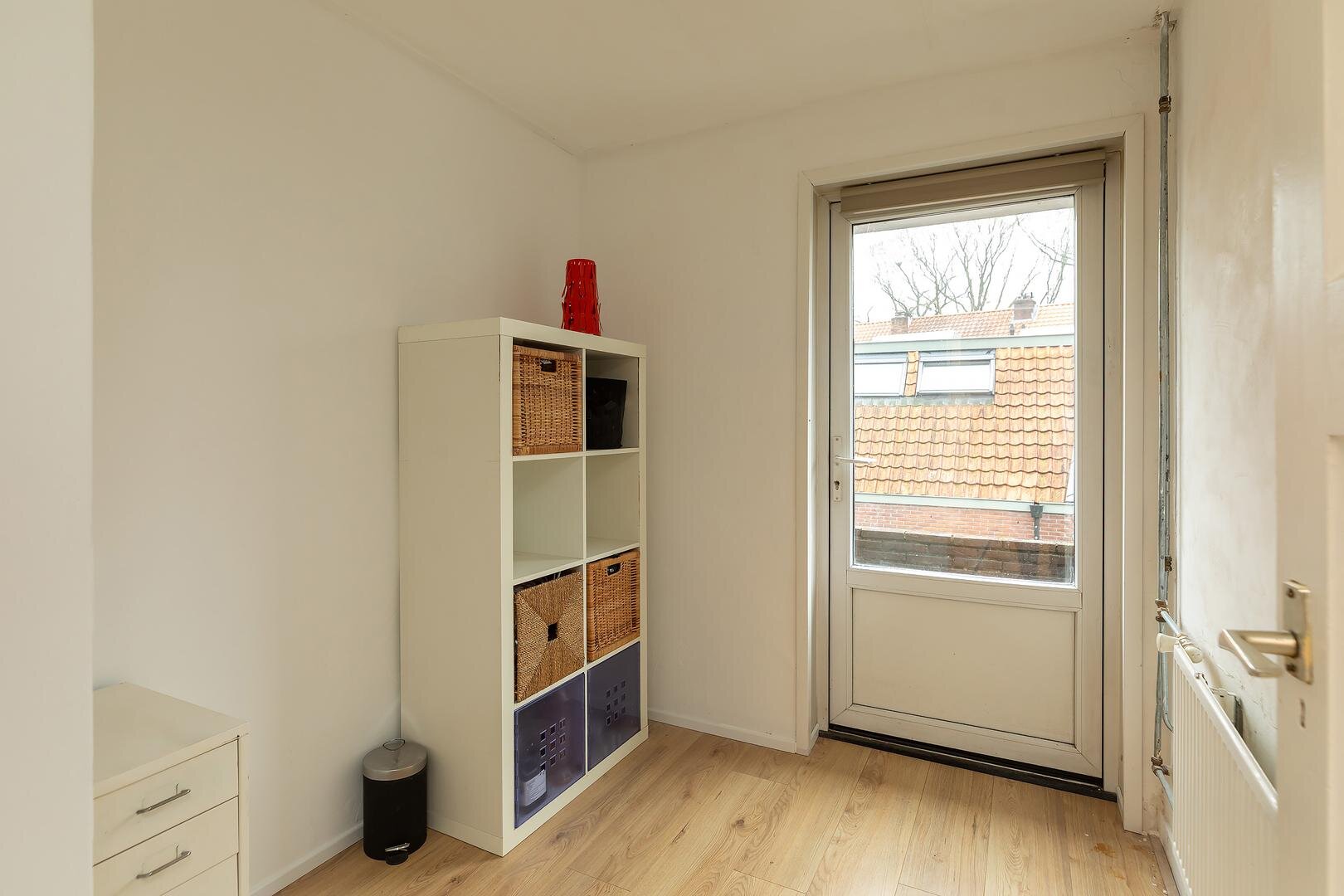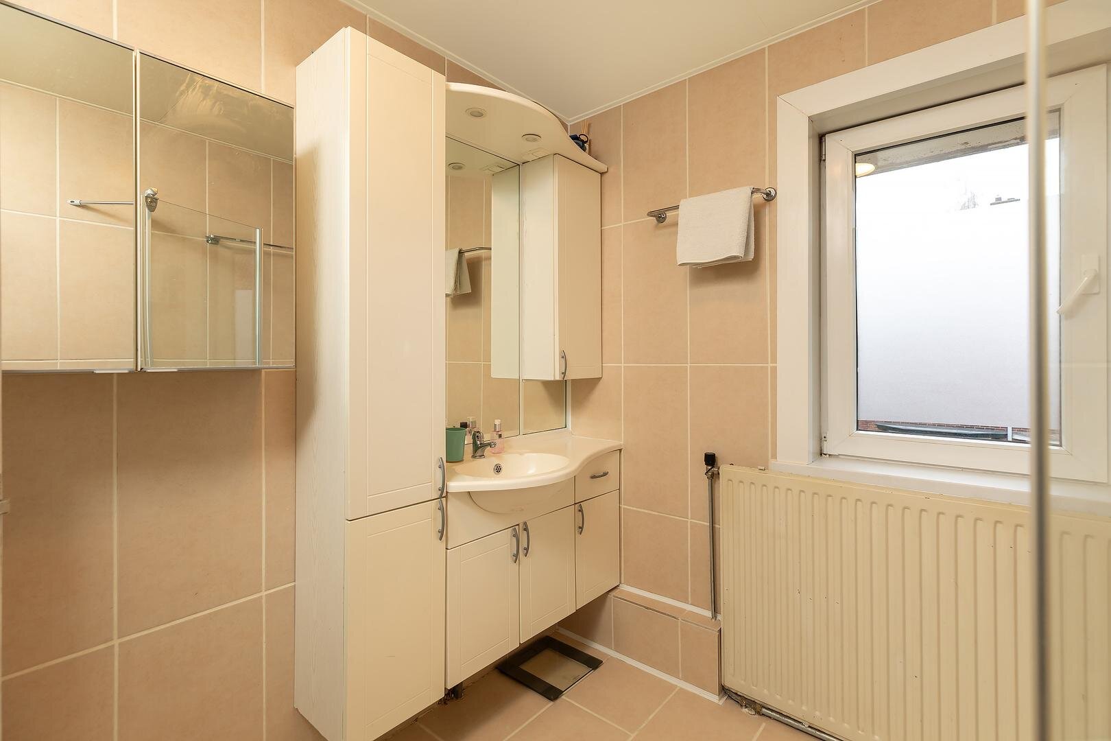 1e verdieping: overloop met toilet, 2 grote en 1 kleinere slaapkamer waarvan de 2 grote slaapkamers voorzien zijn van een vaste kast en de kleinere slaapkamer met deur naar balkon aan de achterzijde. De geheel betegelde badkamer is gesitueerd aan de voorzijde en heeft een ruime inloopdouche met drain en wastafelmeubel. Deze verdieping is voorzien van een laminaatvloer.